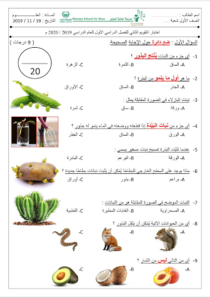نرفق لكم ملف يتضمن الاختبار التقويمي الثاني من مادة العلوم للصف الاول الفصل الدراسي الأول للعام الدراسي 2019-2020