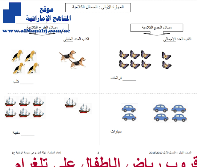 ورقة عمل طرح وجمع الأرقام - إعداد: نهلة المزروعي | ||