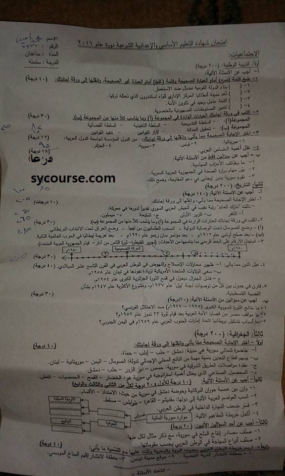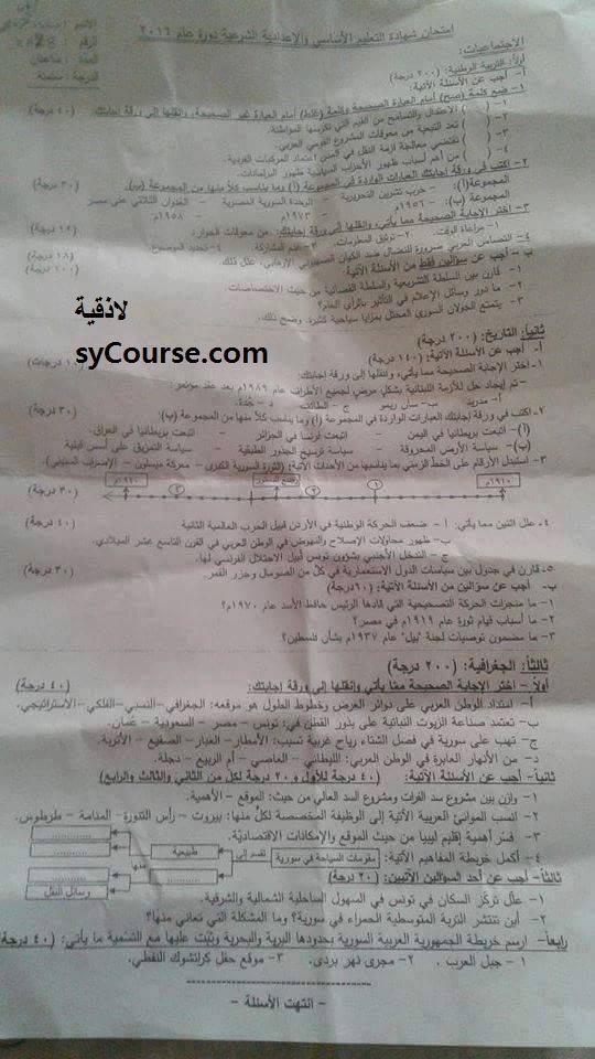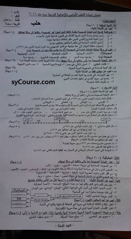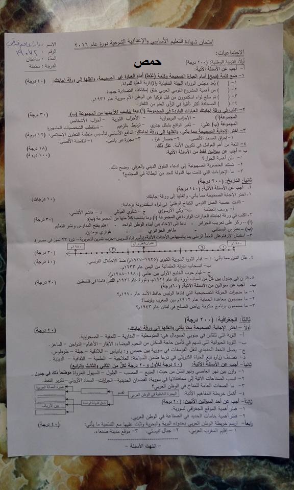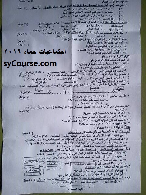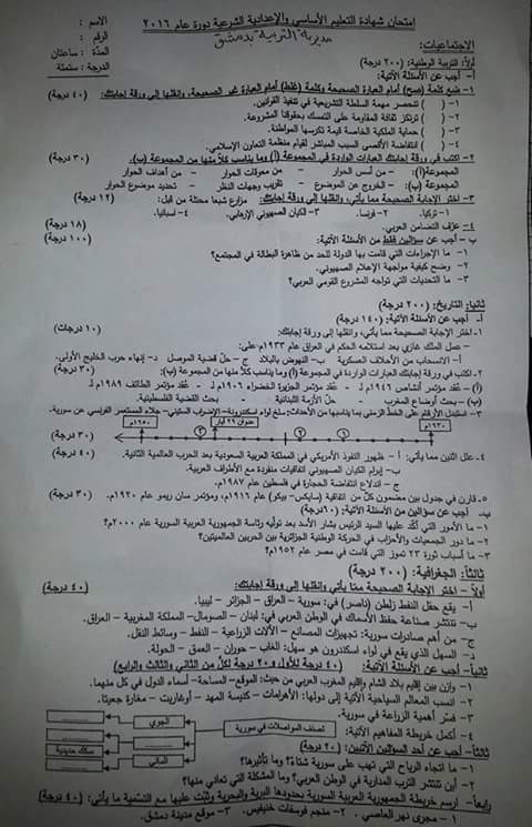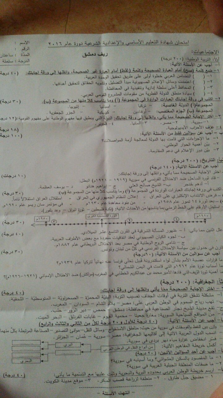 أسئلة اجتماعيات تاسع في سورية 2016 لجميع المحافظات حمص حماه دمشق ريف دمشق طرطوس حلب | ||