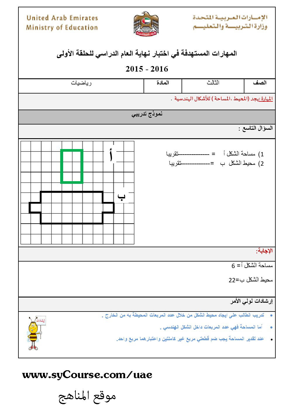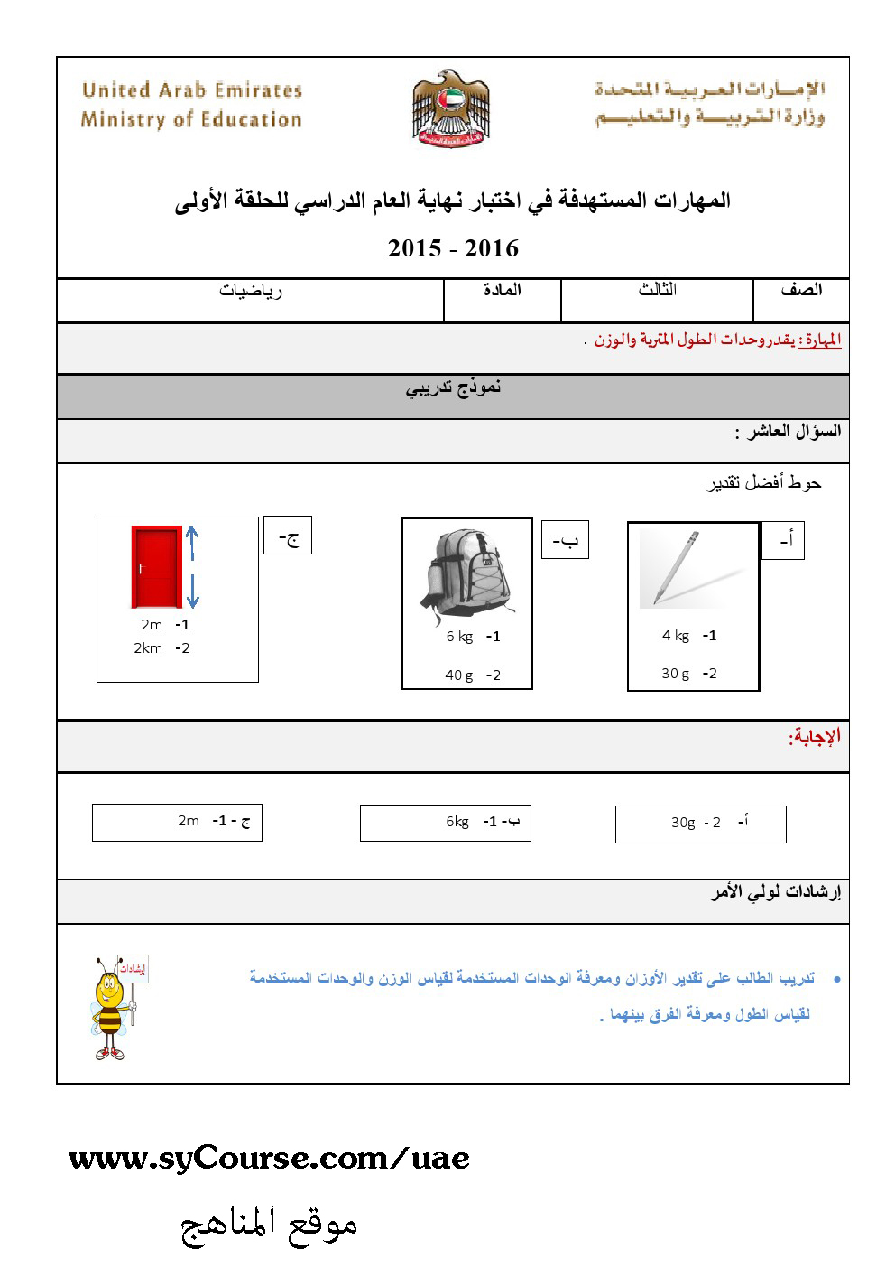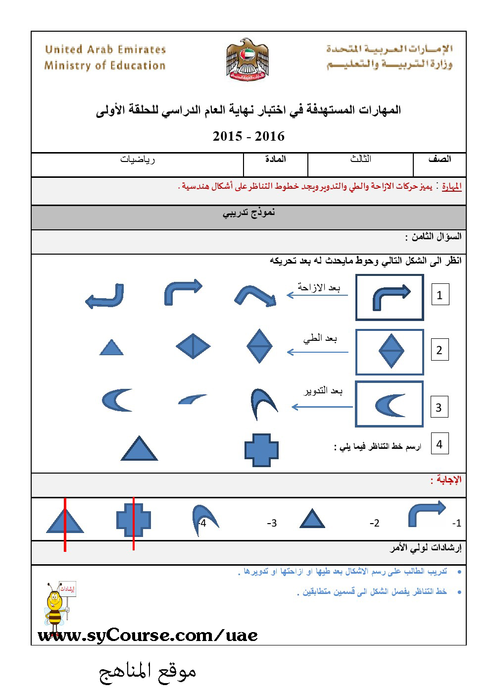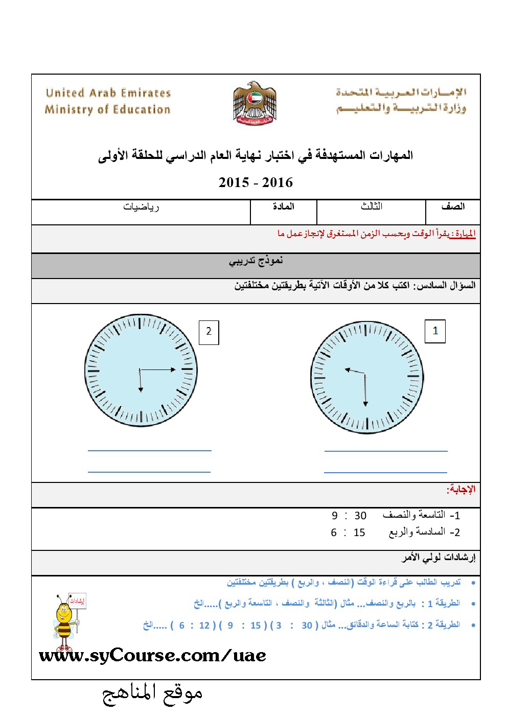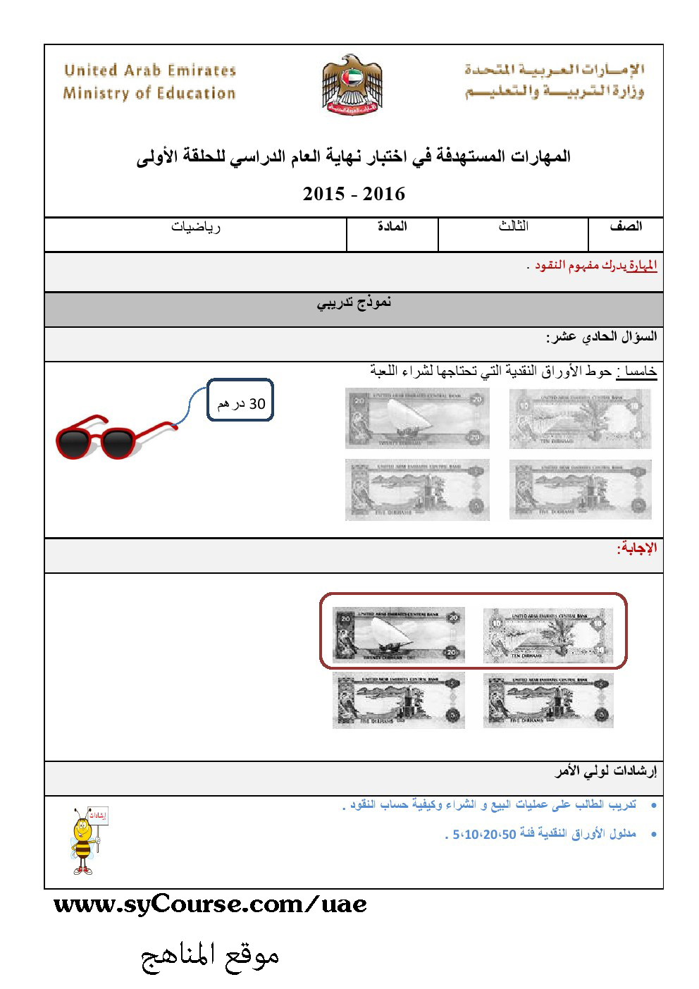 الامارات العربية المتحدة - وزارة التربية والتعليم- ادارة التقييم والامتحانات الدليل الارشادي للصف الثالث للمواد(تربية اسلامية ولغة عربية ورياضيات) يحوي المطلوب والمقرر من كل مادة من الجزأين الأول والثاني من الكتاب, حيث تم التركيز على مهارات معينة مع أمثلة: للتحميل على شكل كتاب الكتروني اتبع الرابط: https://www.moe.gov.ae/Arabic/Docs/Assessment/2016/%D8%A7%D9%84%D8%AF%D9%84%D9%8A%D9%84%20%D8%A7%D9%84%D8%A7%D8%B1%D8%B4%D8%A7%D8%AF%D9%8A%20%D9%84%D9%84%D8%B5%D9%81%20%D8%A7%D9%84%D8%AB%D8%A7%D9%84%D8%AB.pdf | ||