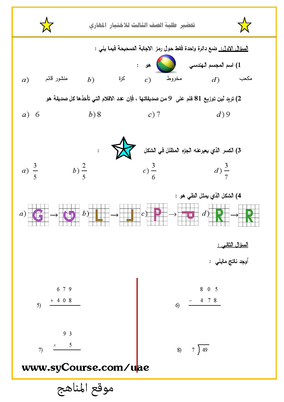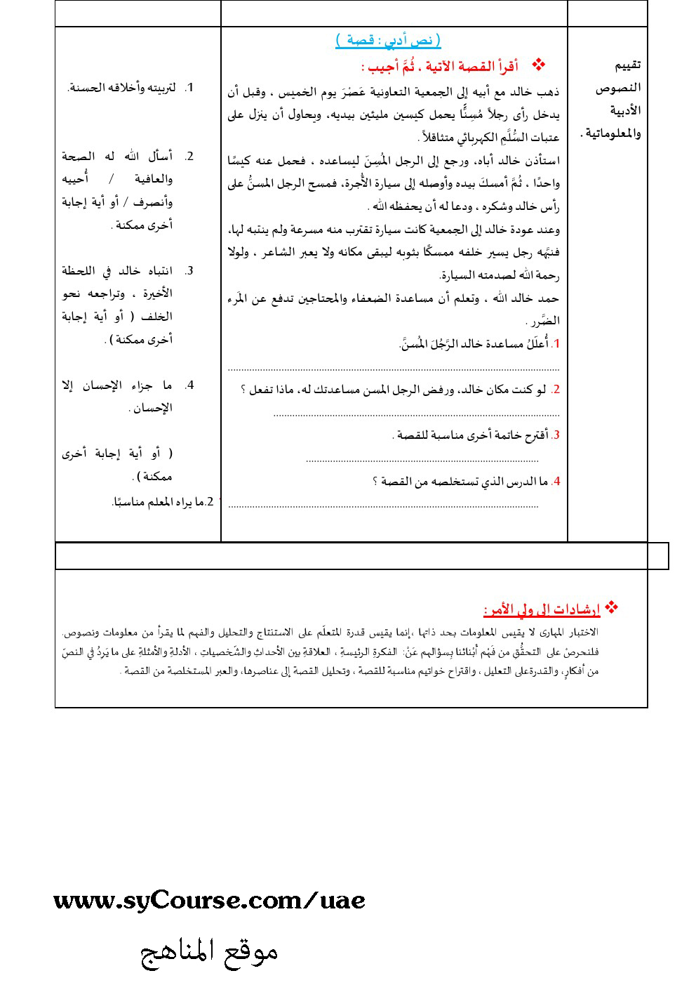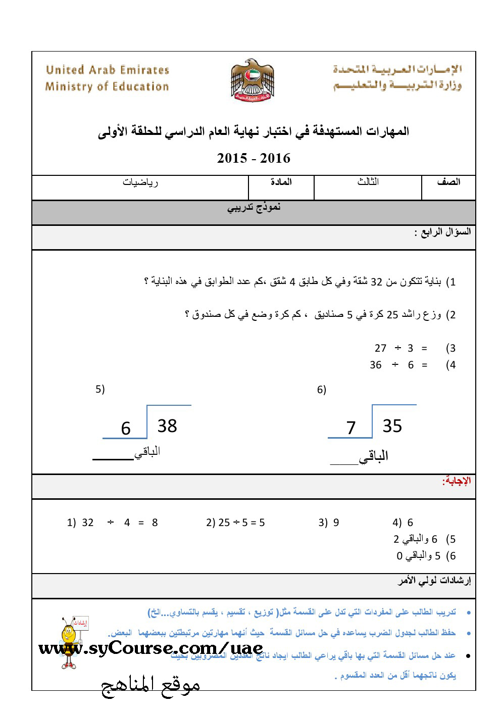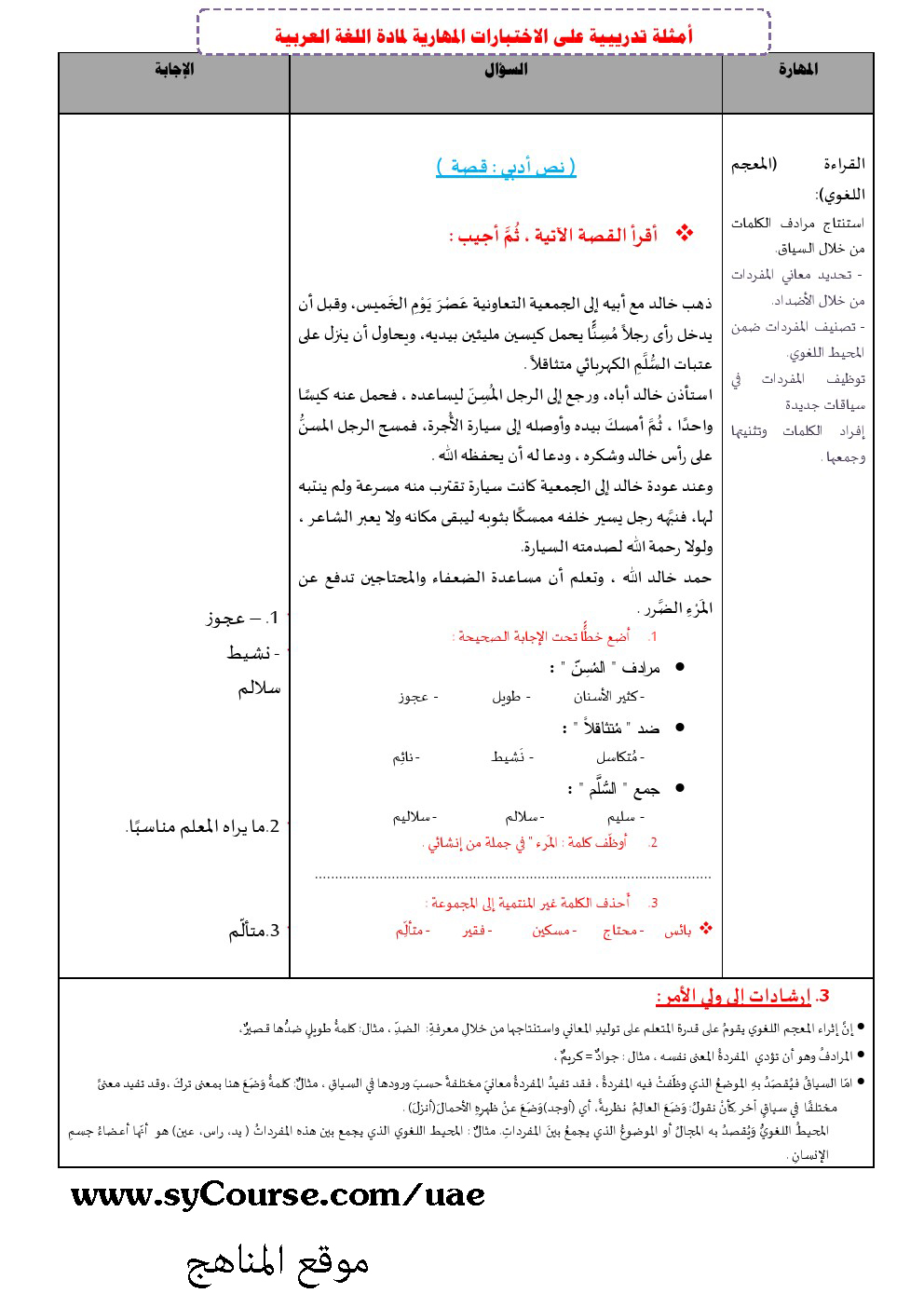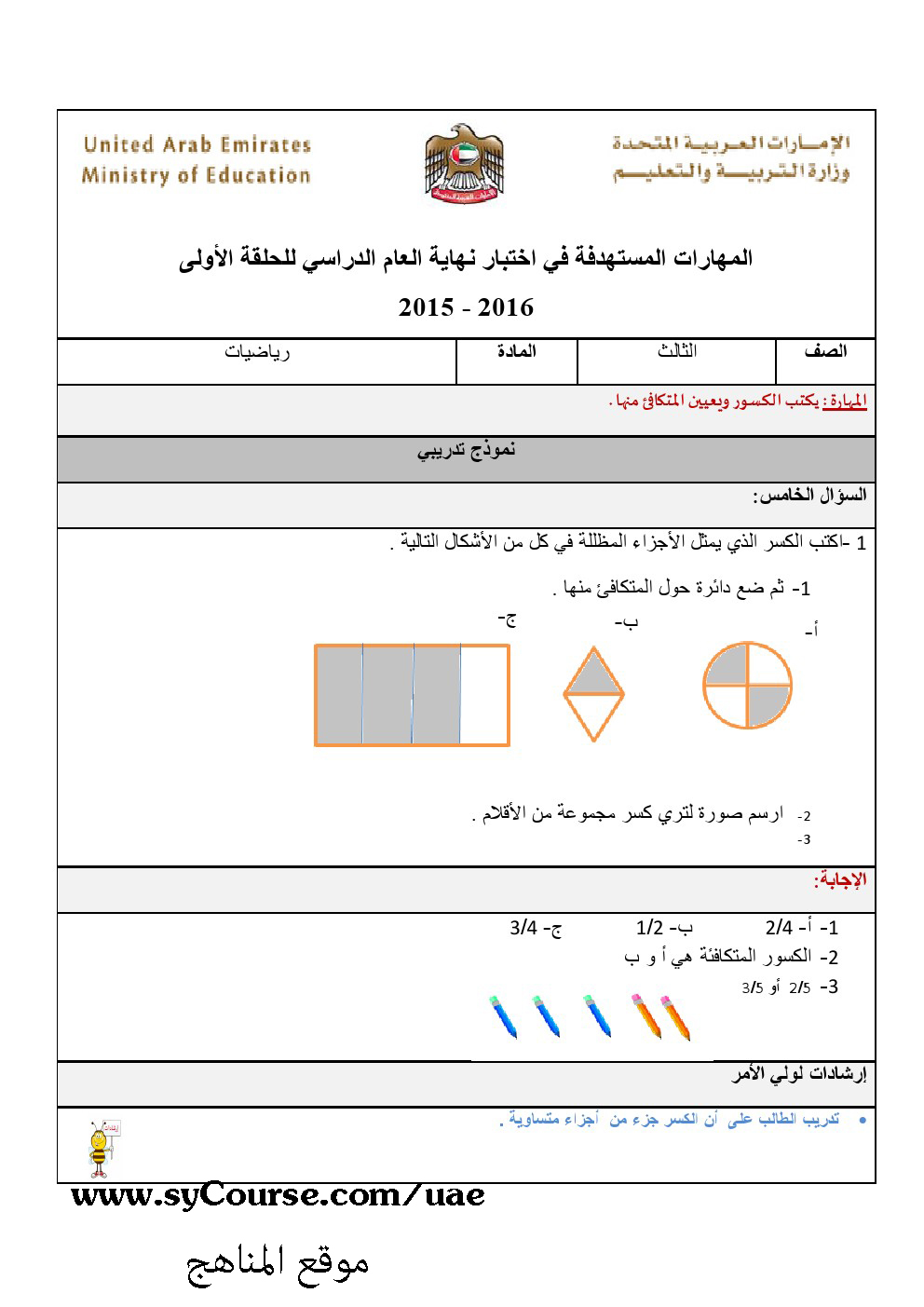 الامارات العربية المتحدة - وزارة التربية والتعليم- ادارة التقييم والامتحانات الدليل الارشادي للصف الثالث للمواد(تربية اسلامية ولغة عربية ورياضيات) يحوي المطلوب والمقرر من كل مادة من الجزأين الأول والثاني من الكتاب, حيث تم التركيز على مهارات معينة مع أمثلة: للتحميل على شكل كتاب الكتروني اتبع الرابط: https://www.moe.gov.ae/Arabic/Docs/Assessment/2016/%D8%A7%D9%84%D8%AF%D9%84%D9%8A%D9%84%20%D8%A7%D9%84%D8%A7%D8%B1%D8%B4%D8%A7%D8%AF%D9%8A%20%D9%84%D9%84%D8%B5%D9%81%20%D8%A7%D9%84%D8%AB%D8%A7%D9%84%D8%AB.pdf | ||