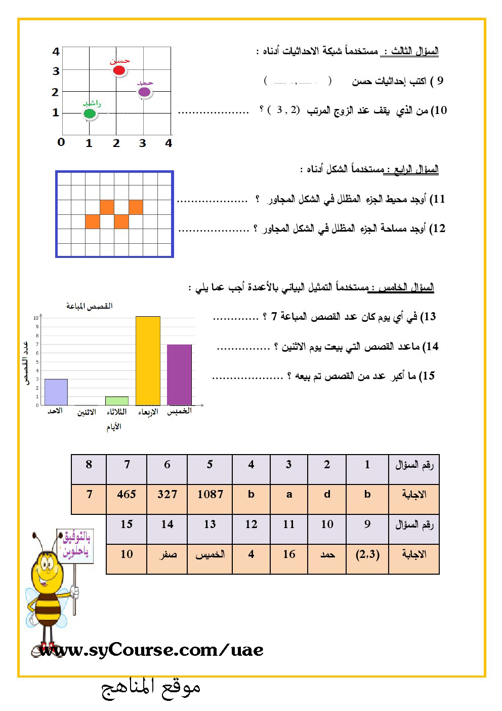 على شكل صور- المطلوب والمقرر في الامتحان- الدليل الارشادي للصف الثالث(تربية اسلامية, لغة عربية, رياضيات) 2015-2016 | ||