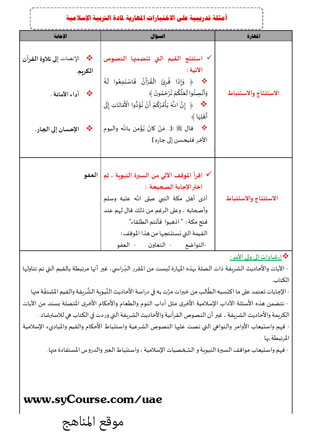 الملاحظات المثبتة في المناهج الإماراتية | |