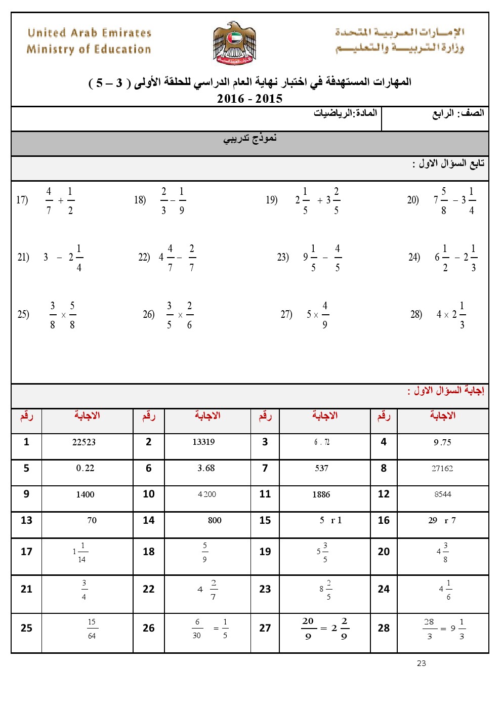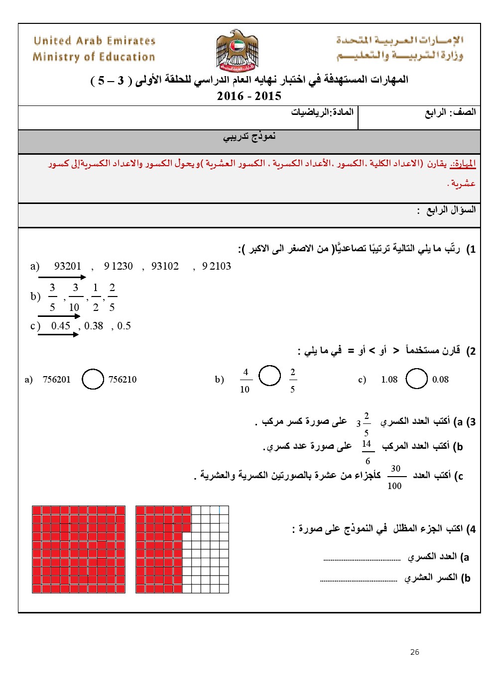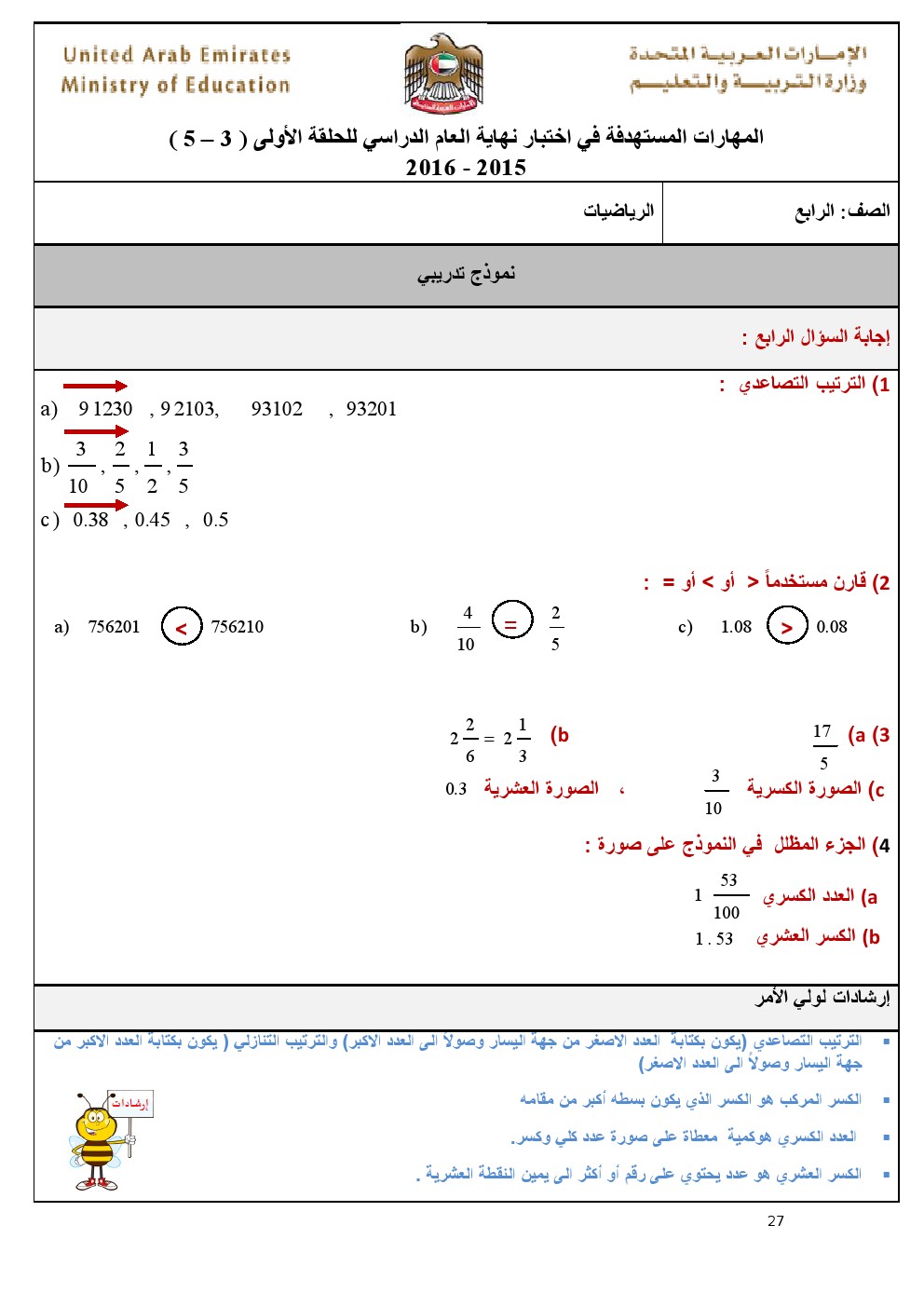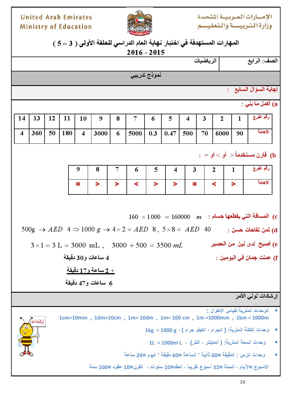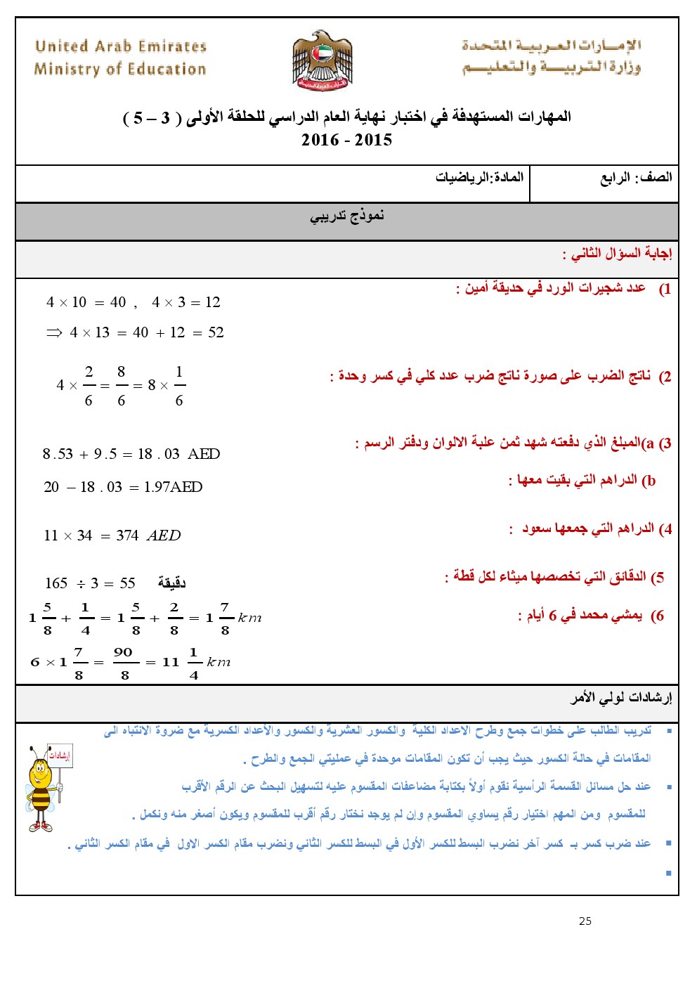 بالصور: الدليل الارشادي للصف الرابع- أمثلة تدريبية وأوراق عمل للمواد( رياضيات, لغة عربية, تربية اسلامية) 20162015\2016, | ||