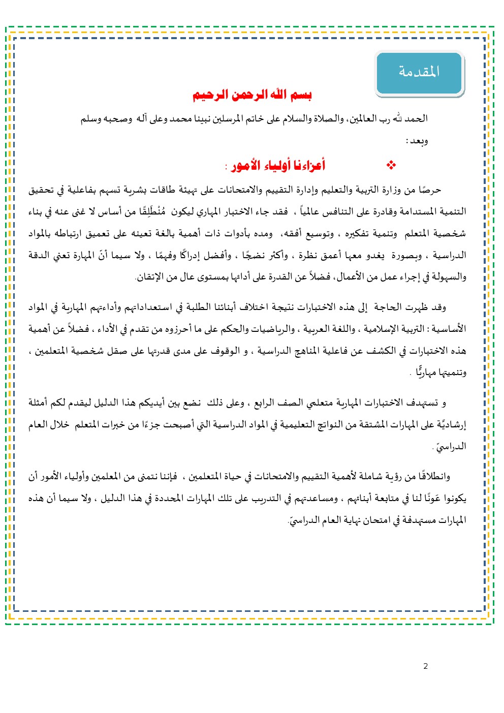 جميع الاختبارات التشخيصية المتوفرة في جميع المواد ولجميع الصفوف | |