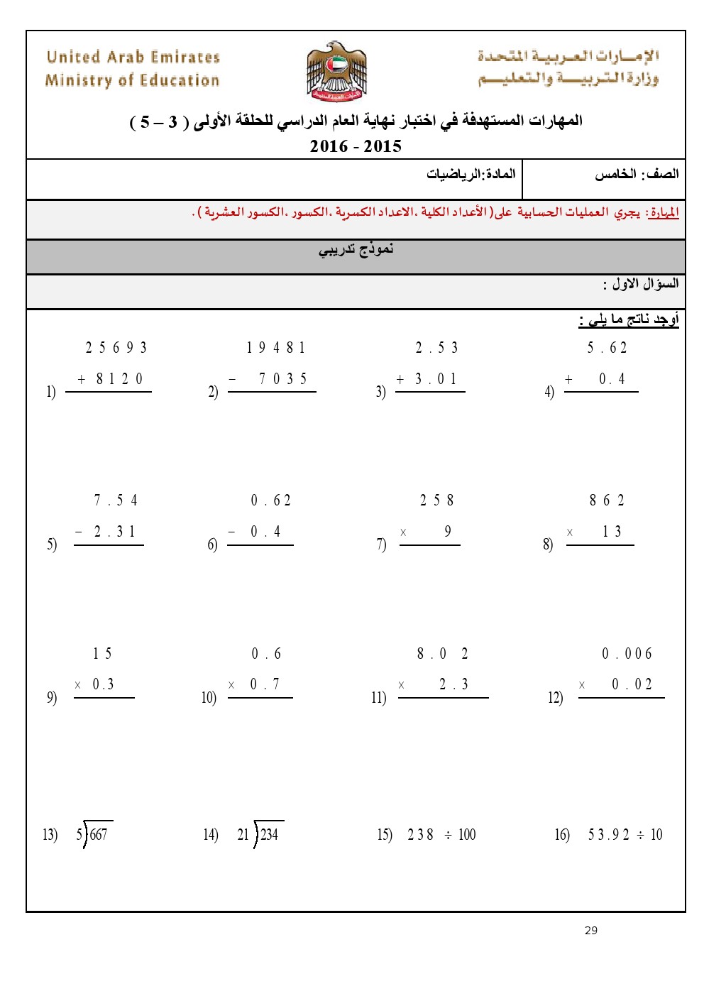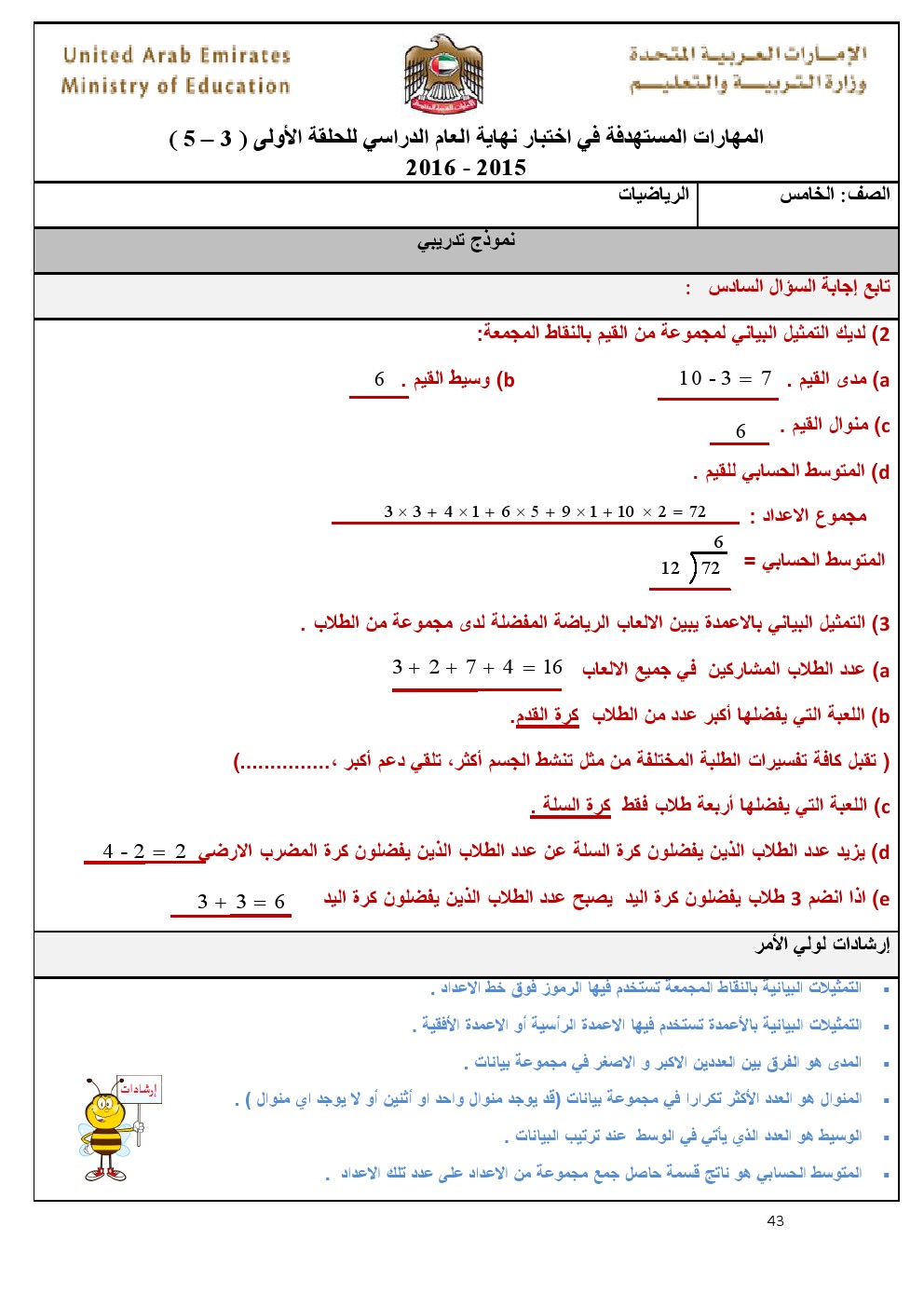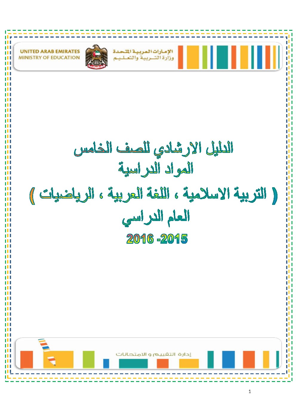 معلومات الملف: بالصور: الدليل الارشادي للصف الخامس أمثلة تدريبية وأوراق عمل للمواد( رياضيات, لغة عربية, تربية اسلامية) 2016-2015 | ||