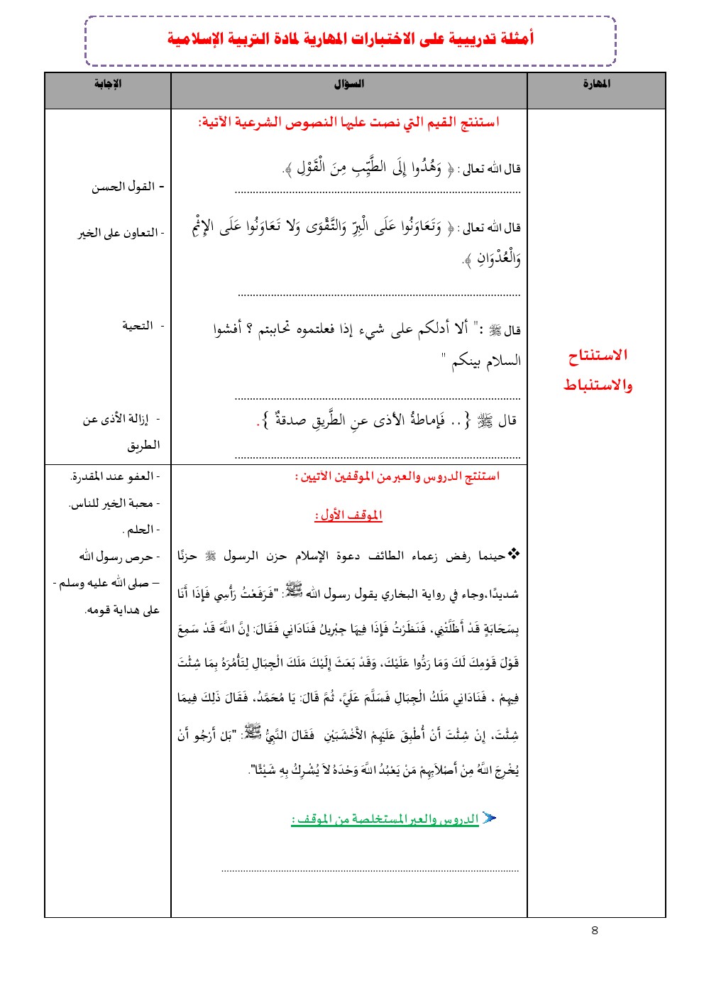 بالصور: الدليل الارشادي للصف الخامس أمثلة تدريبية وأوراق عمل للمواد( تربية اسلامية) 20162015 | ||