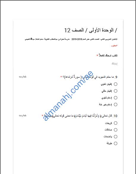 يحتوي الملف المرفق على اختبار تجريبي في الوحدة الأولى في مادة التربية الاسلامية للصف الثاني عشر تحتوي مجموعة من الأسئلة الامتحانية الهامة في الوحدة على شكل اختيار من متعدد تشمل الأسئلة التالية: