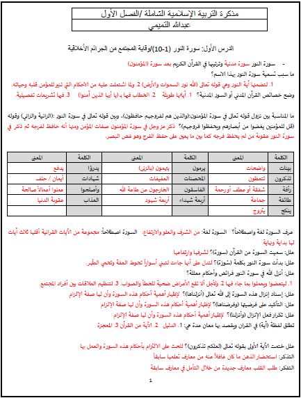 8. الصف العاشر, تربية اسلامية, ملف شامل لجميع أحكام التجويد مع أمثلة
