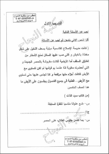 5. الصف السابع, لغة انجليزية, أوراق عمل اختبارية في القراءة والكتابة متبوعة بالإجابات