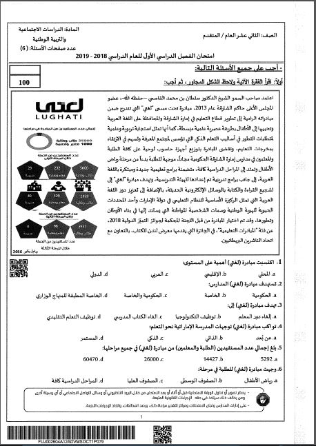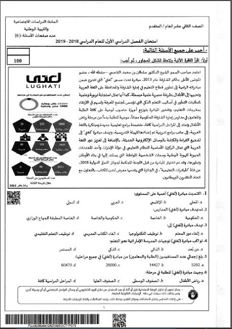يحتوي الملف المرفق على أسئلة الامتحان الرسمي (2018~2019) في مادة الدراسات الاجتماعية للصفين الثاني عشر العام والمتقدم.