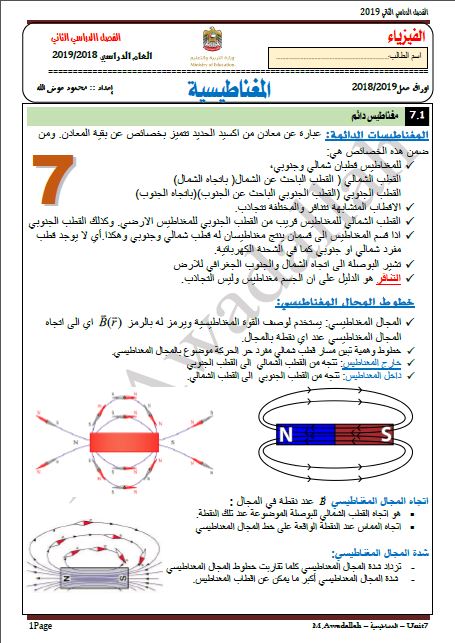 أوراق عمل في المغناطيسية وشرحها - إعداد: محمود عوض الله