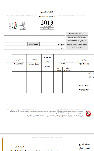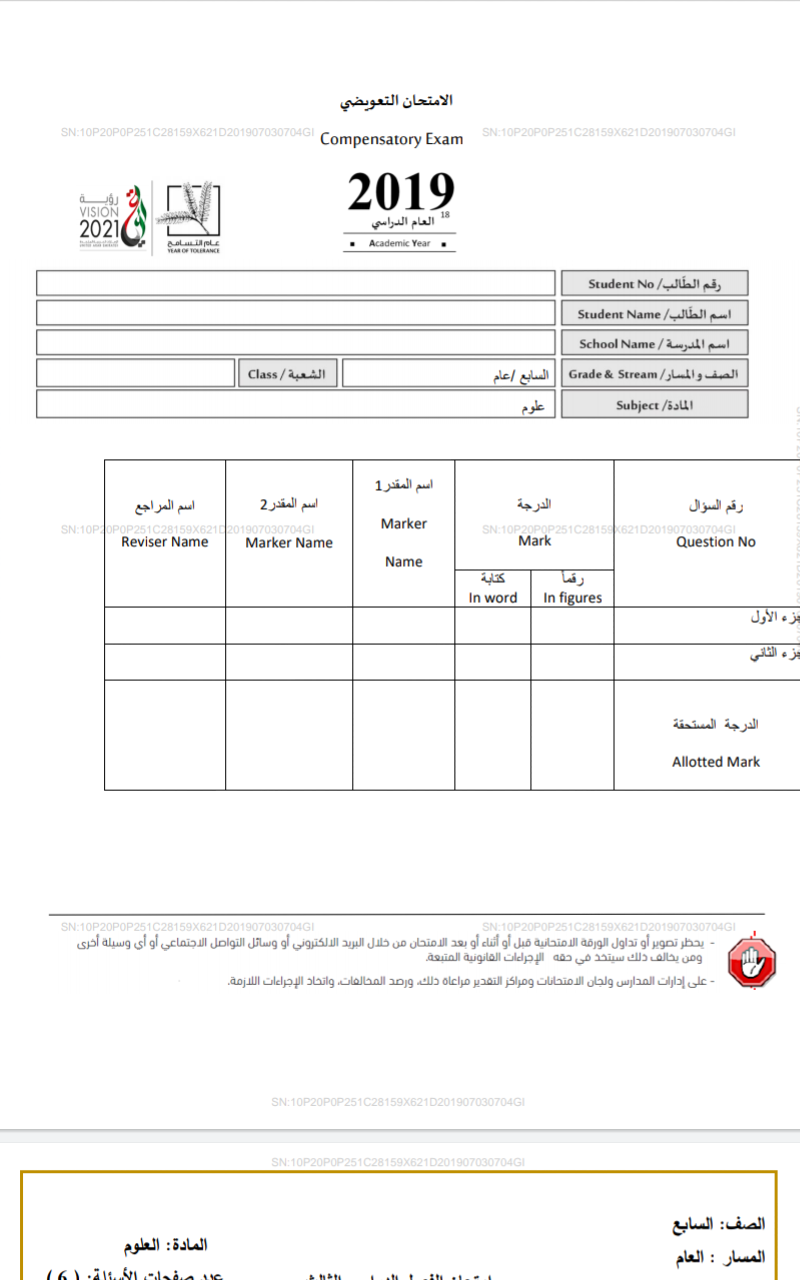 امتحان وزاري تعويضي 2019, الصف السابع, علوم, الفصل الثالث, 2019-2020 - المناهج الإماراتية