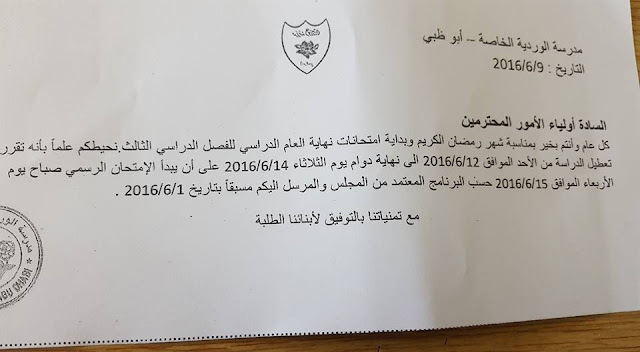 إعلان عطلة ما قبل الامتحان في مدرسة الوردية من يوم الاحد القادم حتى الثلاثاء 2016 | ||