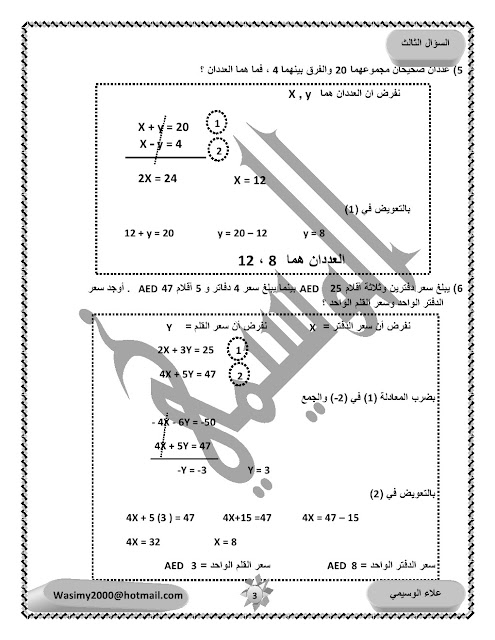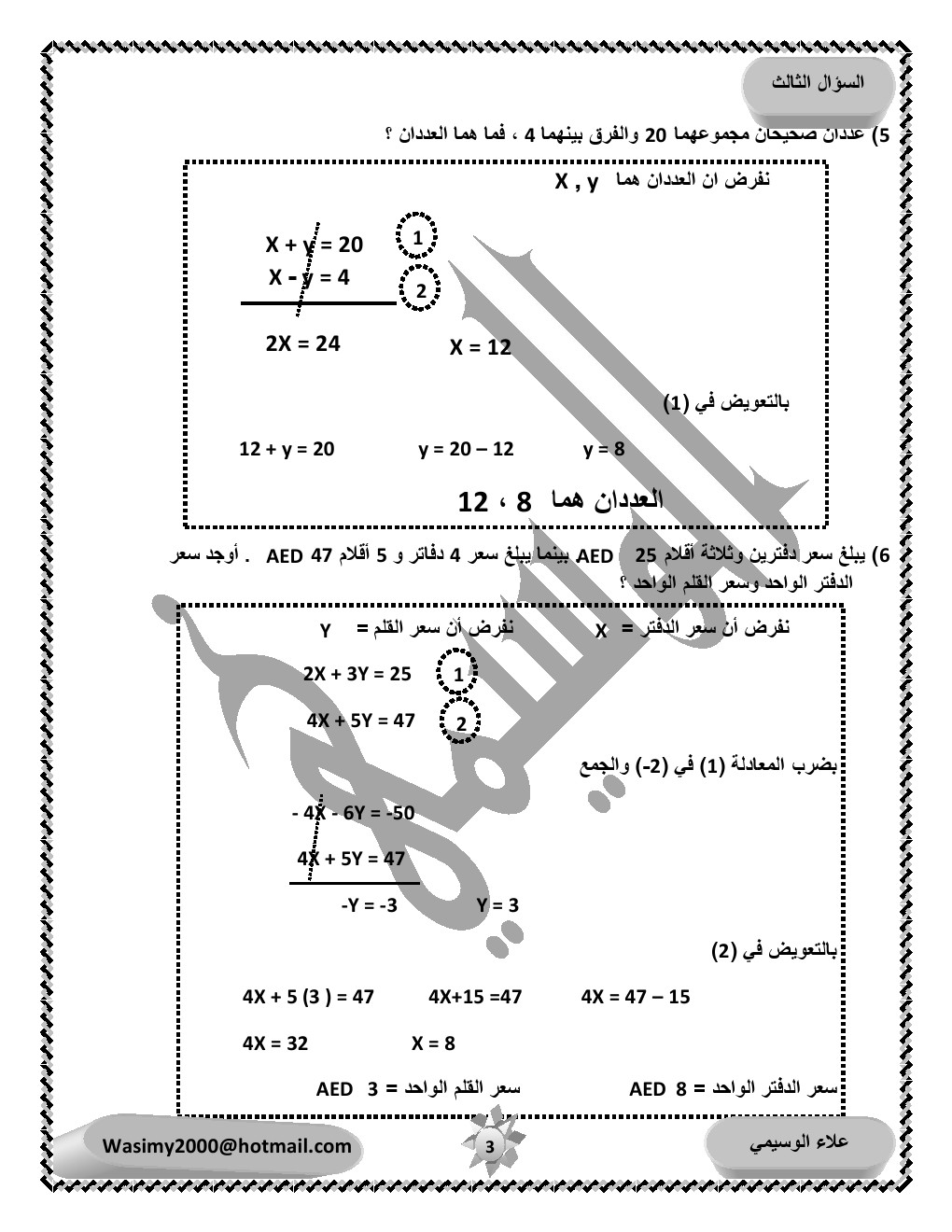 مراجعة عامة في الرياضيات للفصل الثالث على شكل صور | ||