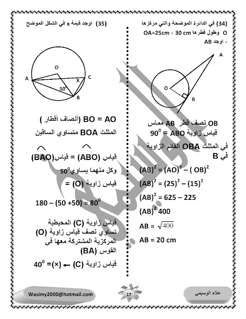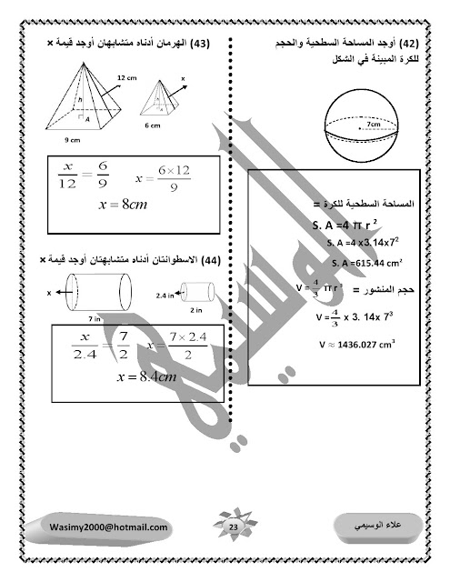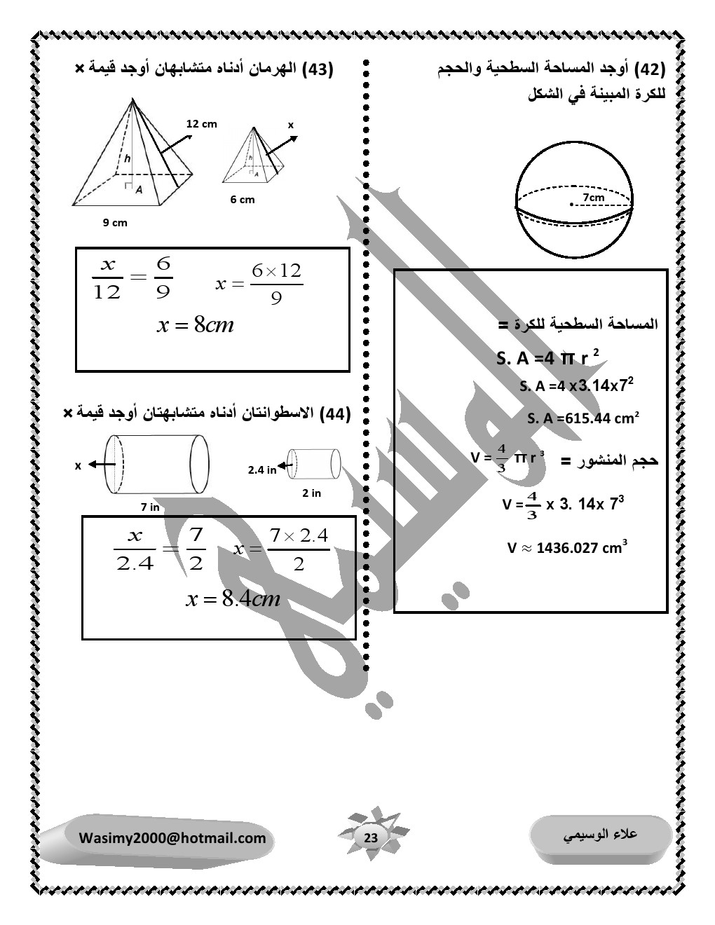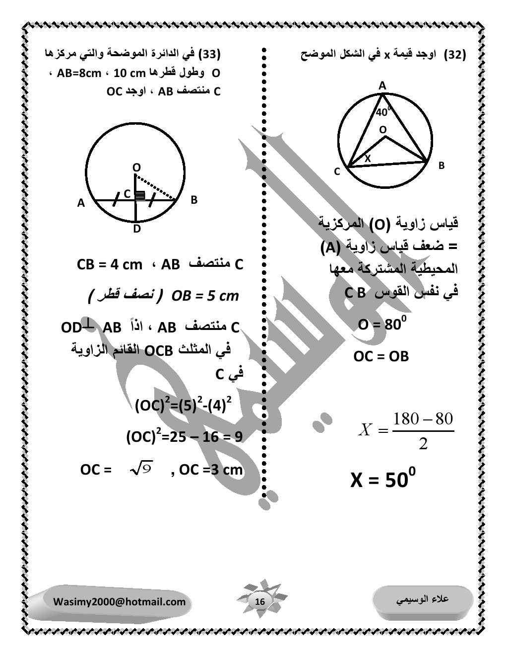 معلومات الملف: الصف التاسع, الفصل الثالث, رياضيات, مراجعة عامة في الرياضيات للفصل الدراسي الثالث على شكل صور | ||