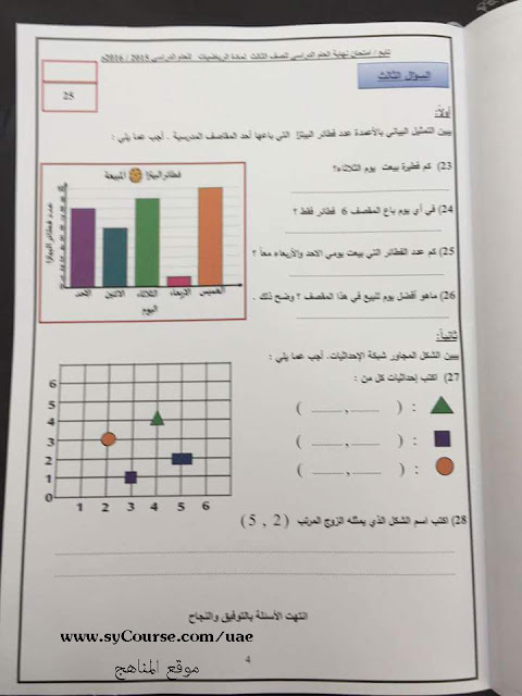 | الصف الثالث, الفصل الثالث, رياضيات, رياضيات, امتحان. نهاية العام2015\2016 | ||