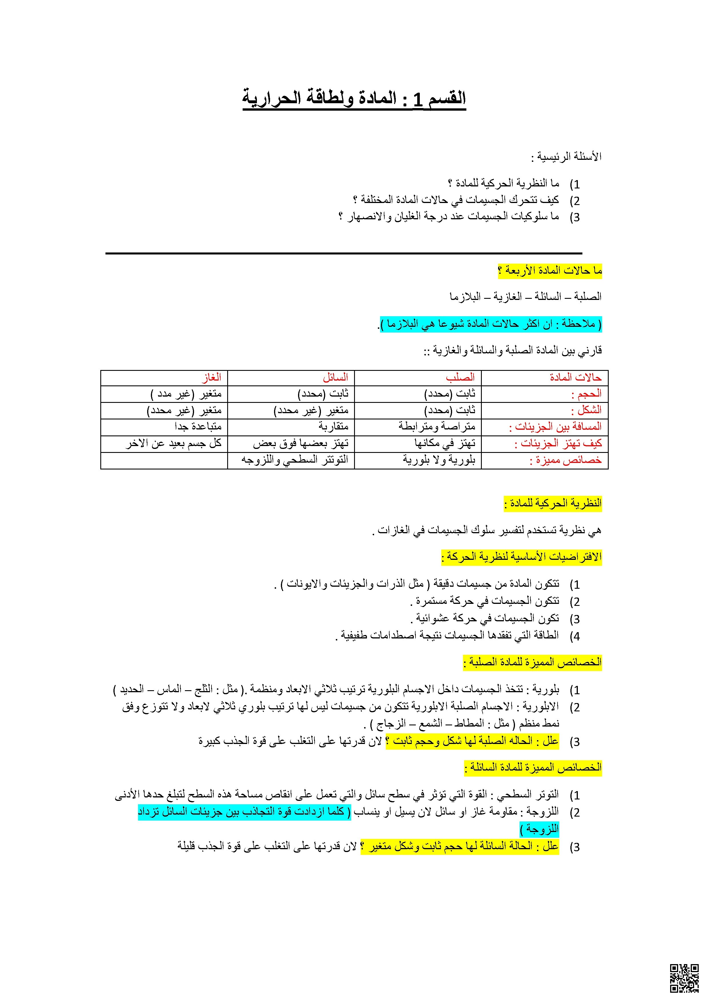 حلول ملخص الوحدة السادسة المادة والطاقة الحرارية وخصائص الموانع