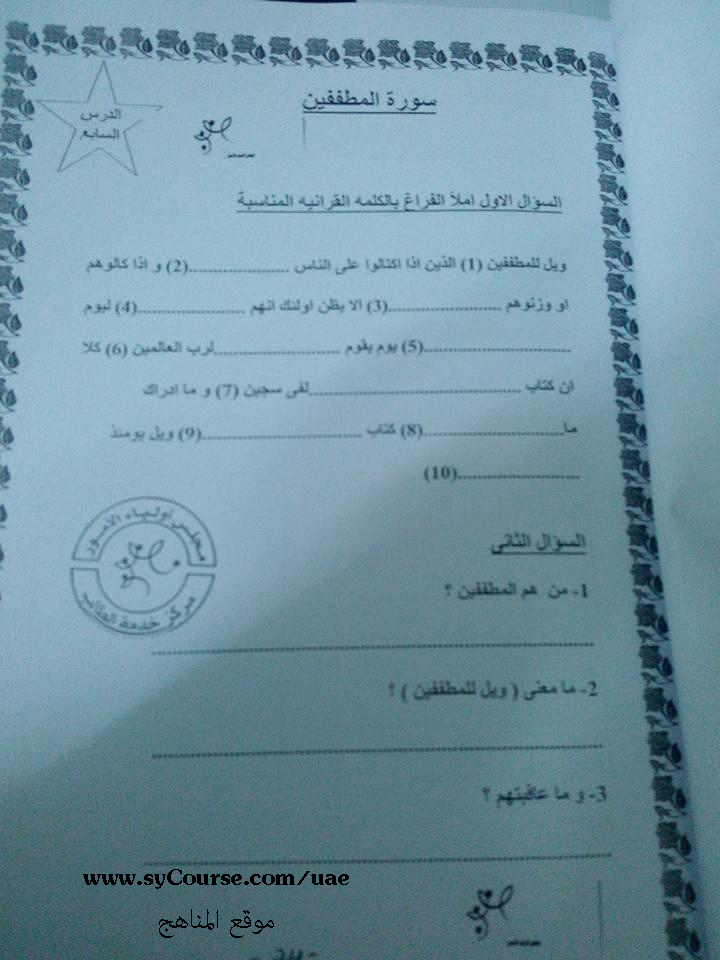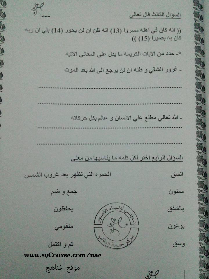 المادة: تربية اسلامية | ||