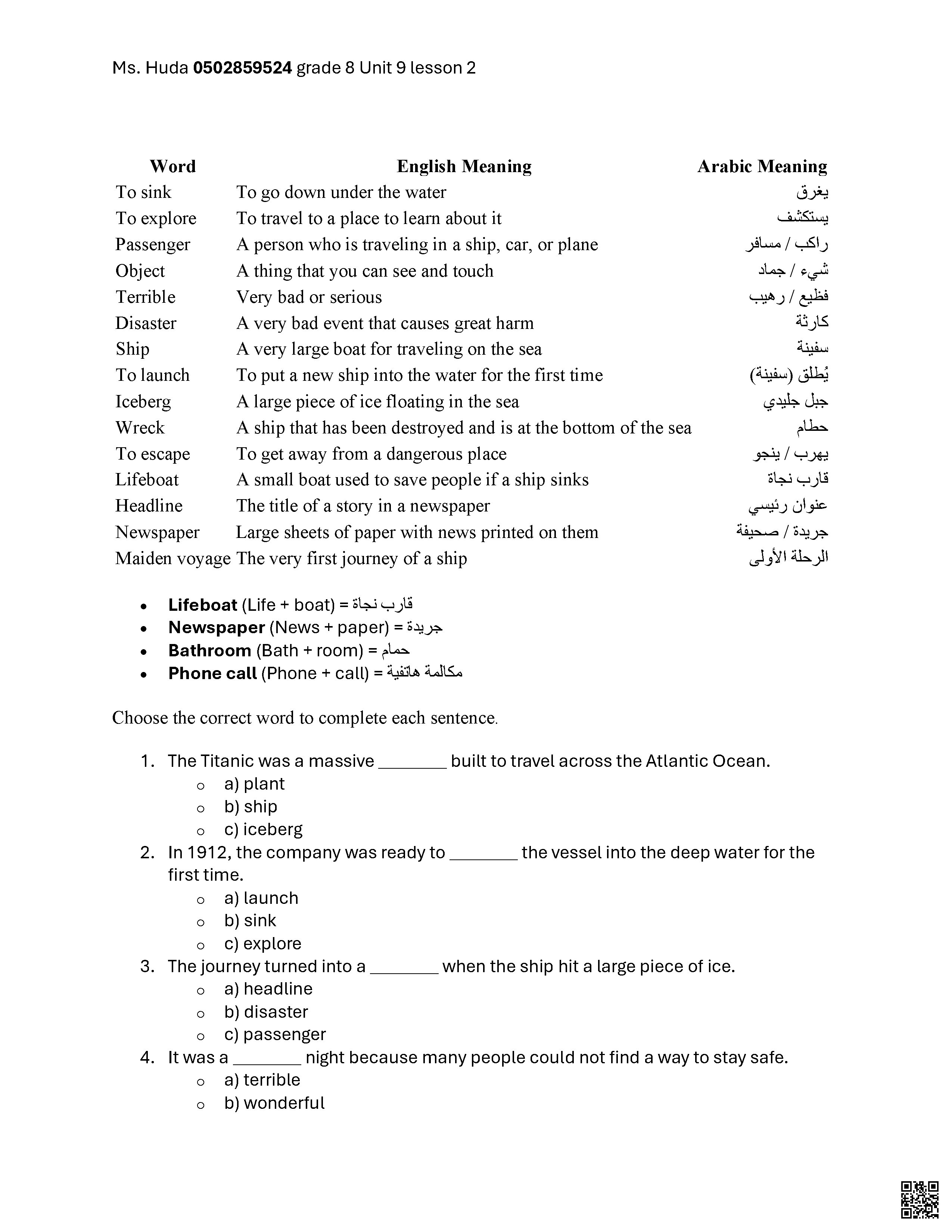 مراجعة مهارات في المفردات والقواعد وفهم المقروء والكتابة