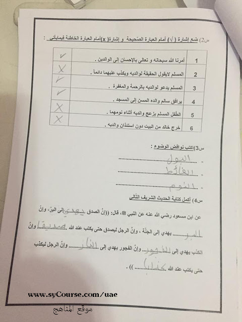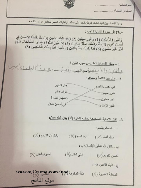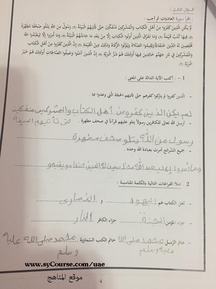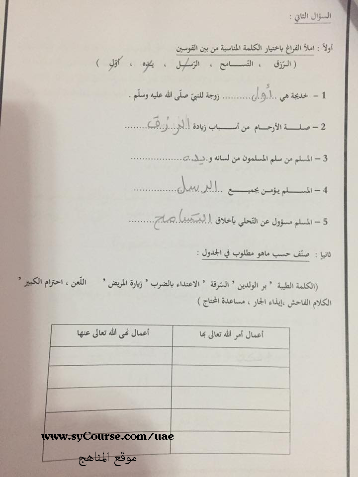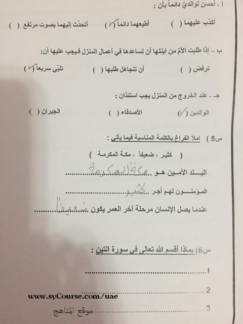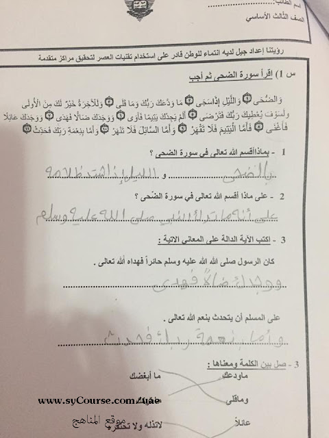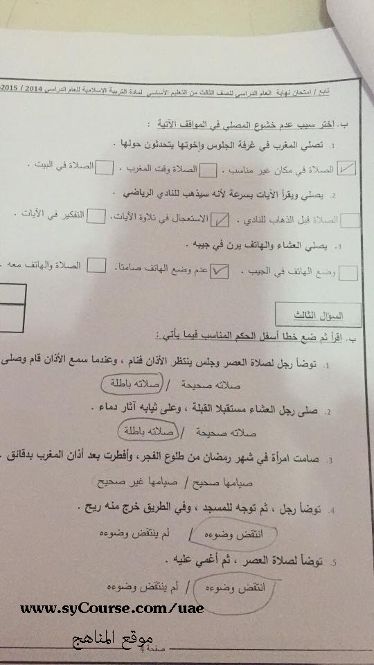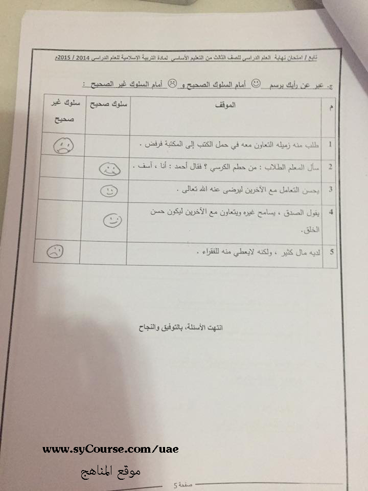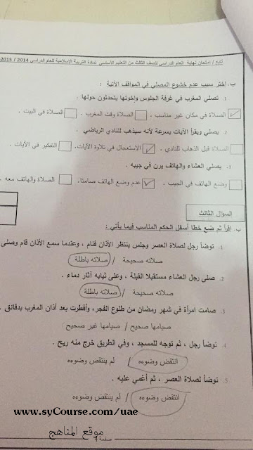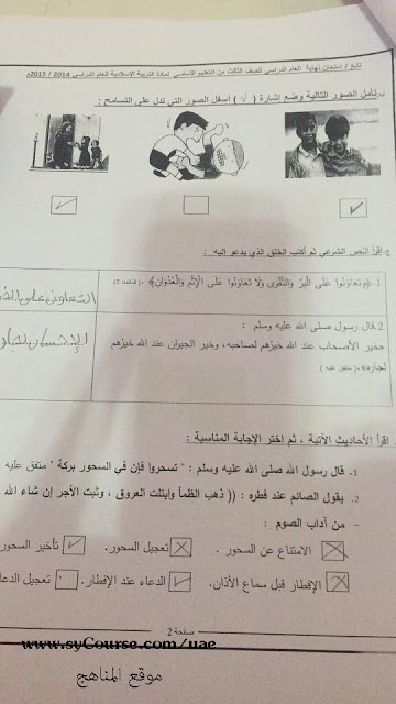 معلومات الملف: الصف الثالث, الفصل الثالث, تربية اسلامية, امتحان نهاية العام 2014-2015 | |||