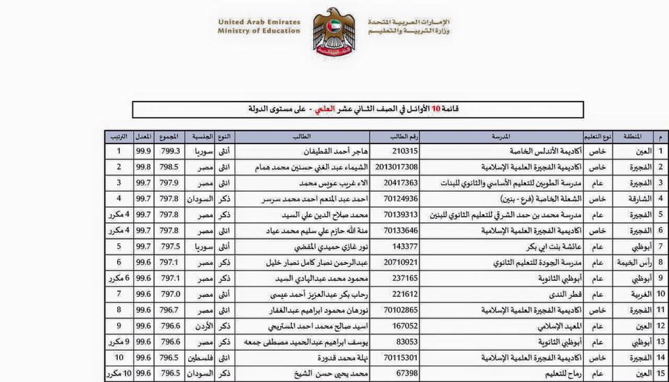 | الامارات - قوائم بأسماء أوائل الثانوية العامة للعام الدراسي 2015\2016 | ||