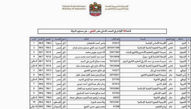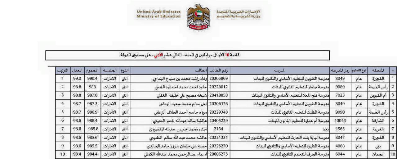 الامارات قوائم بأسماء أوائل الثانوية العامة 20152016, أخبار, أخبار, الفصل الأول, 2018-2019 | ||