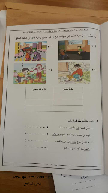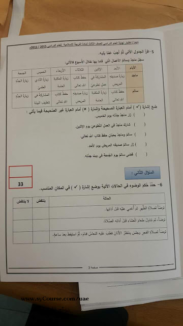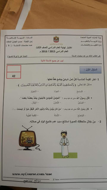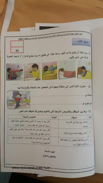 معلومات الملف: الصف الثالث, الفصل الثالث, تربية اسلامية, 2018-2019, امتحان التربية الاسلامية 2016 | |||