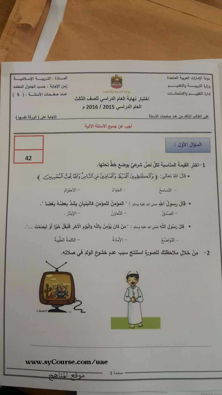 اضغط هنا لتحميل وعرض ( امتحان التربية الاسلامية 2016 ) |