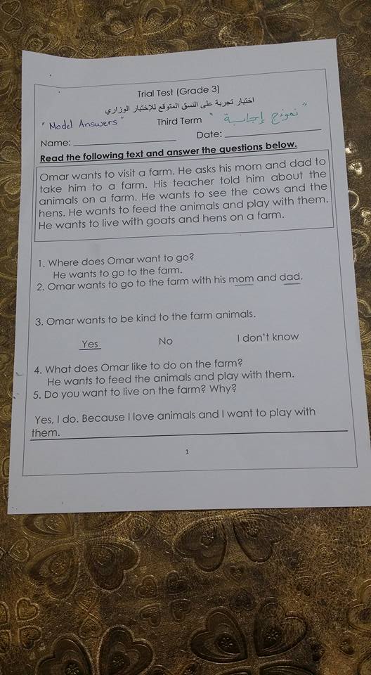 معلومات الملف: الامارات- الصف الثالث- لغة انكليزية - أوراق عمل 2016 Trial test model answers | ||