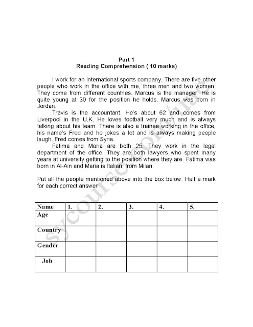 معلومات الملف: الصف السابع, الفصل الثالث, لغة انكليزية, امتحان نهائي لغة انكليزية 2007 | ||