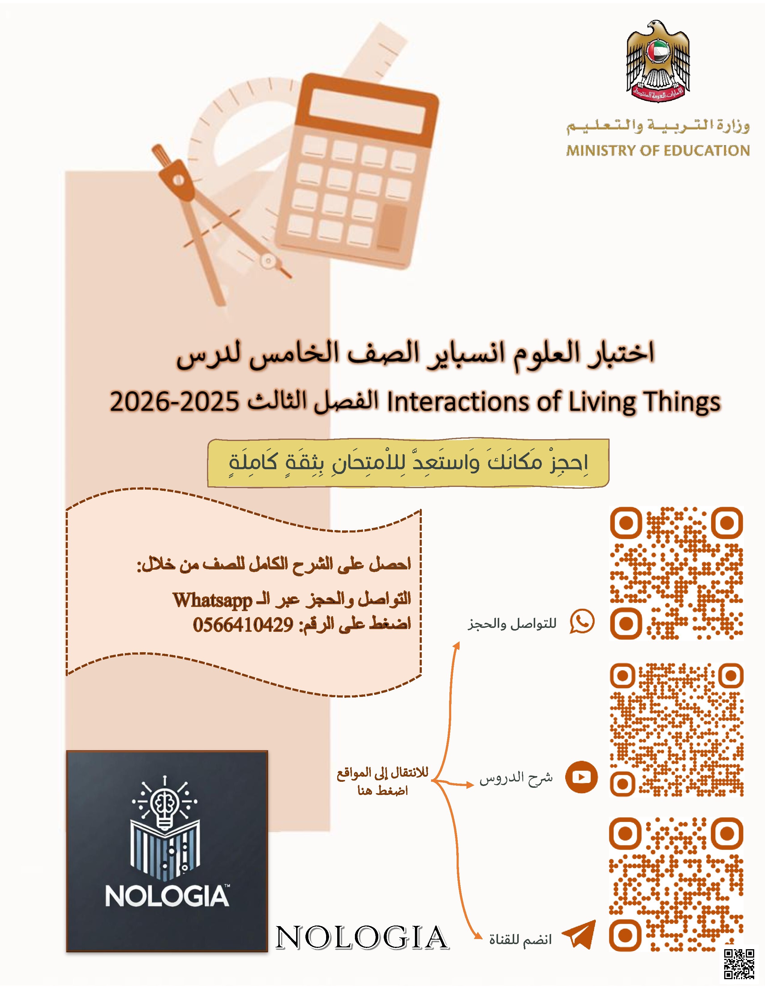 إجابة اختبار انسباير لدرس Interactions of Living Things