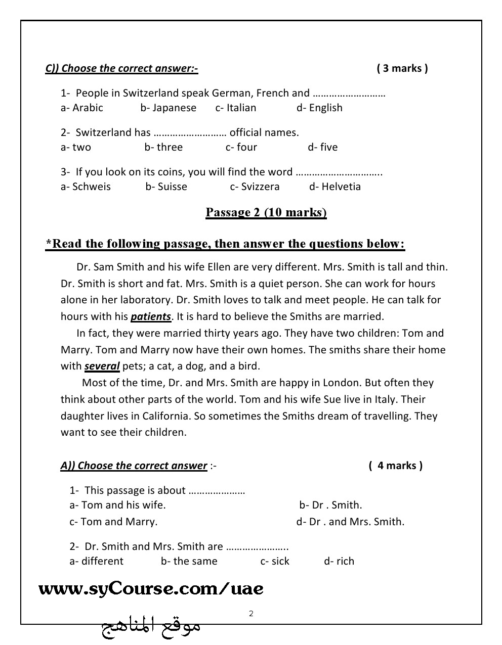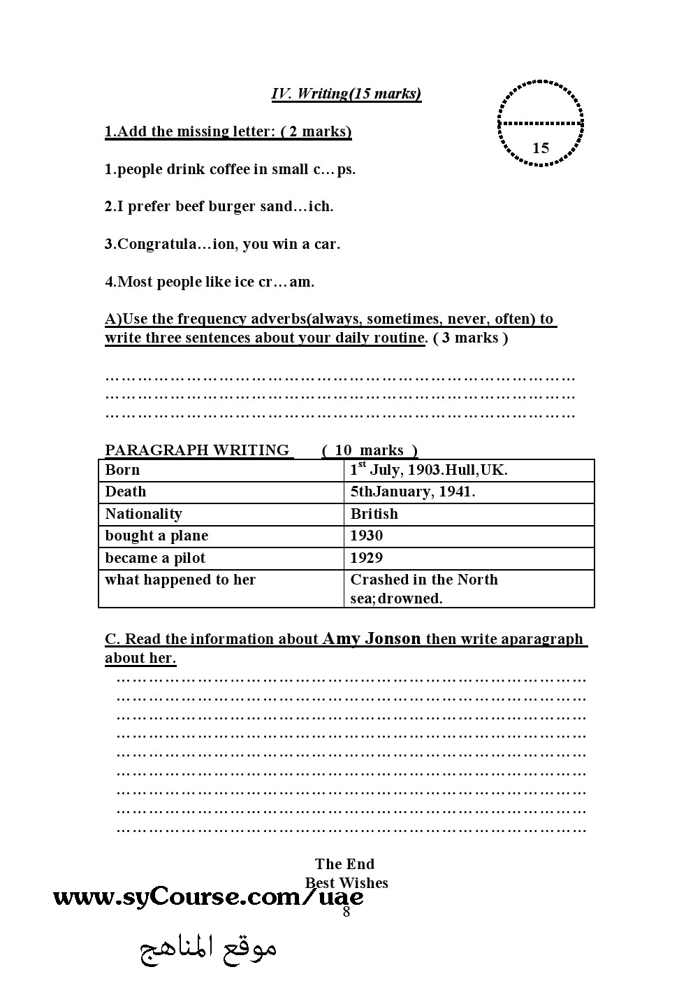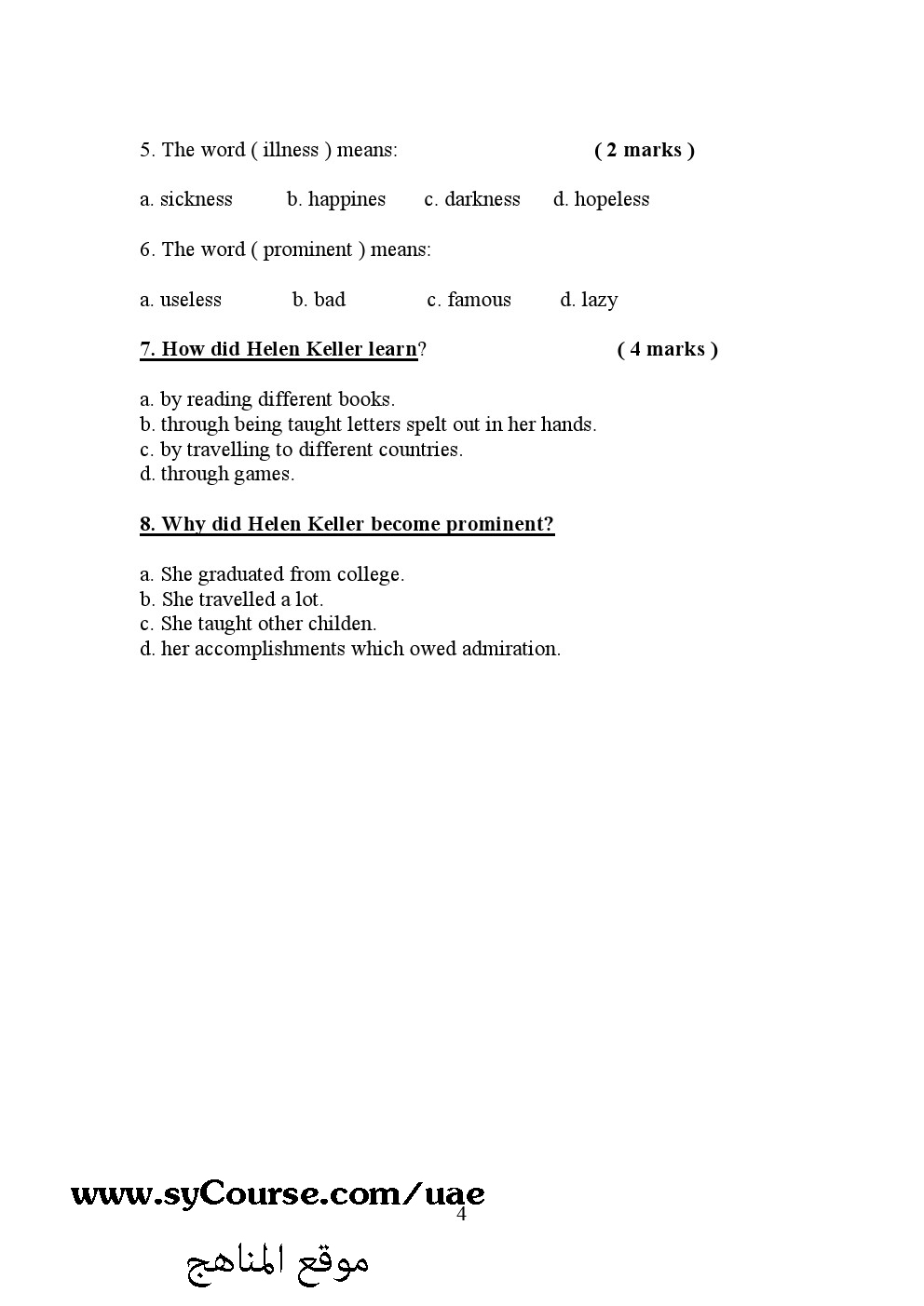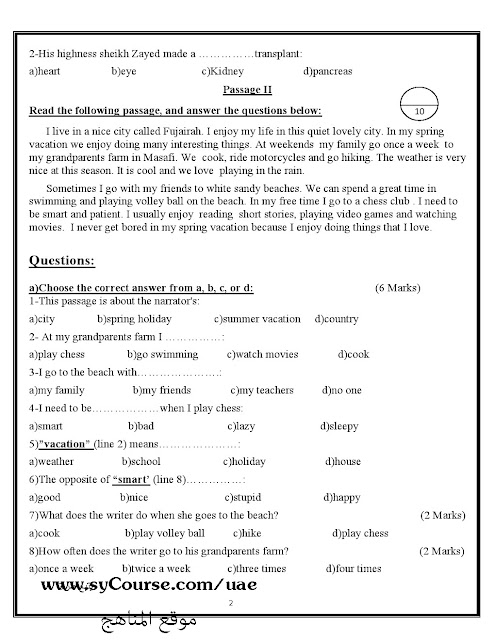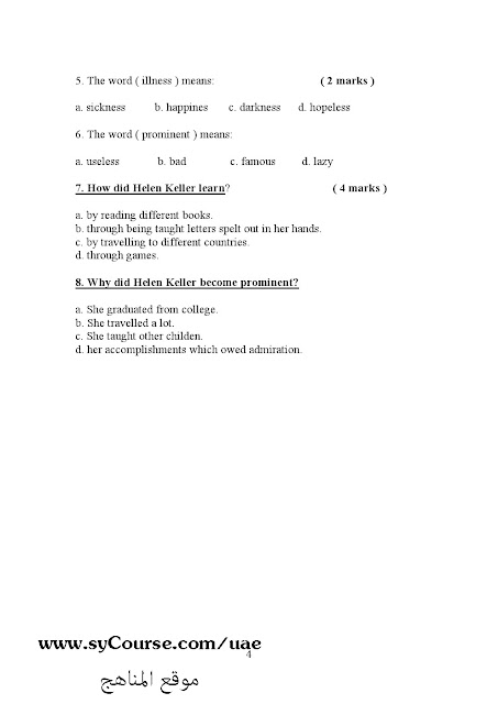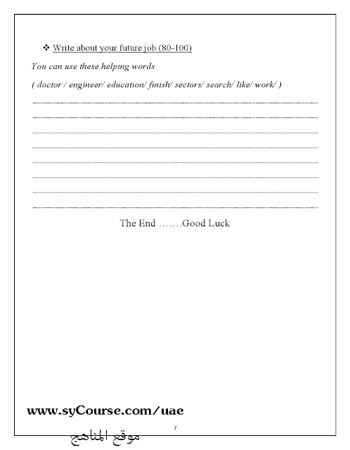 معلومات الملف: الصف الثامن, الفصل الثاني, لغة انكليزية, امتحان لغة انكليزية 2010-2012 | ||