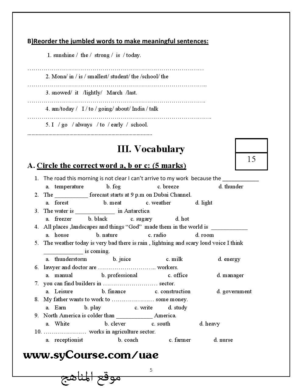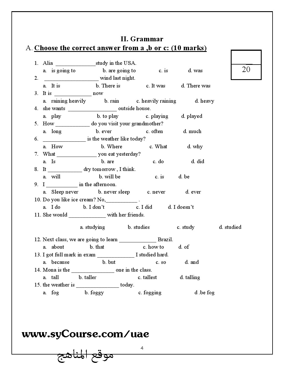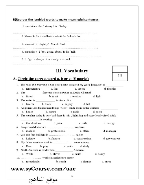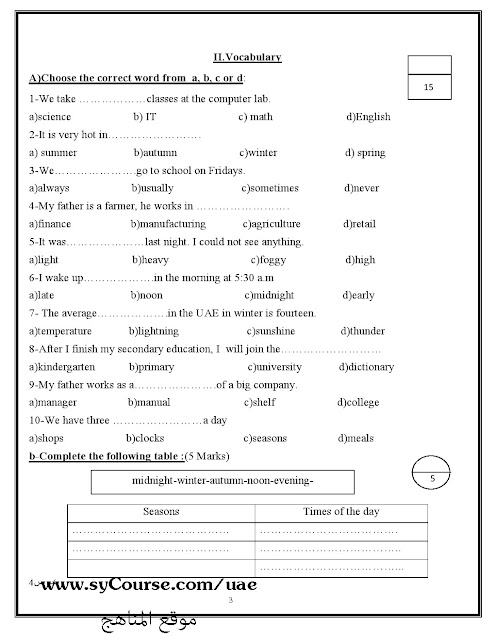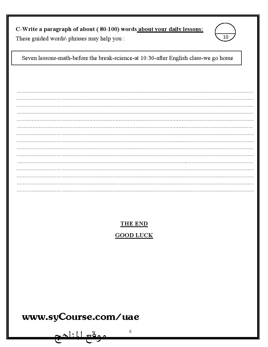 معلومات الملف: الصف الثامن, الفصل الثاني, لغة انكليزية, امتحان لغة انكليزية 2010-2012 | ||