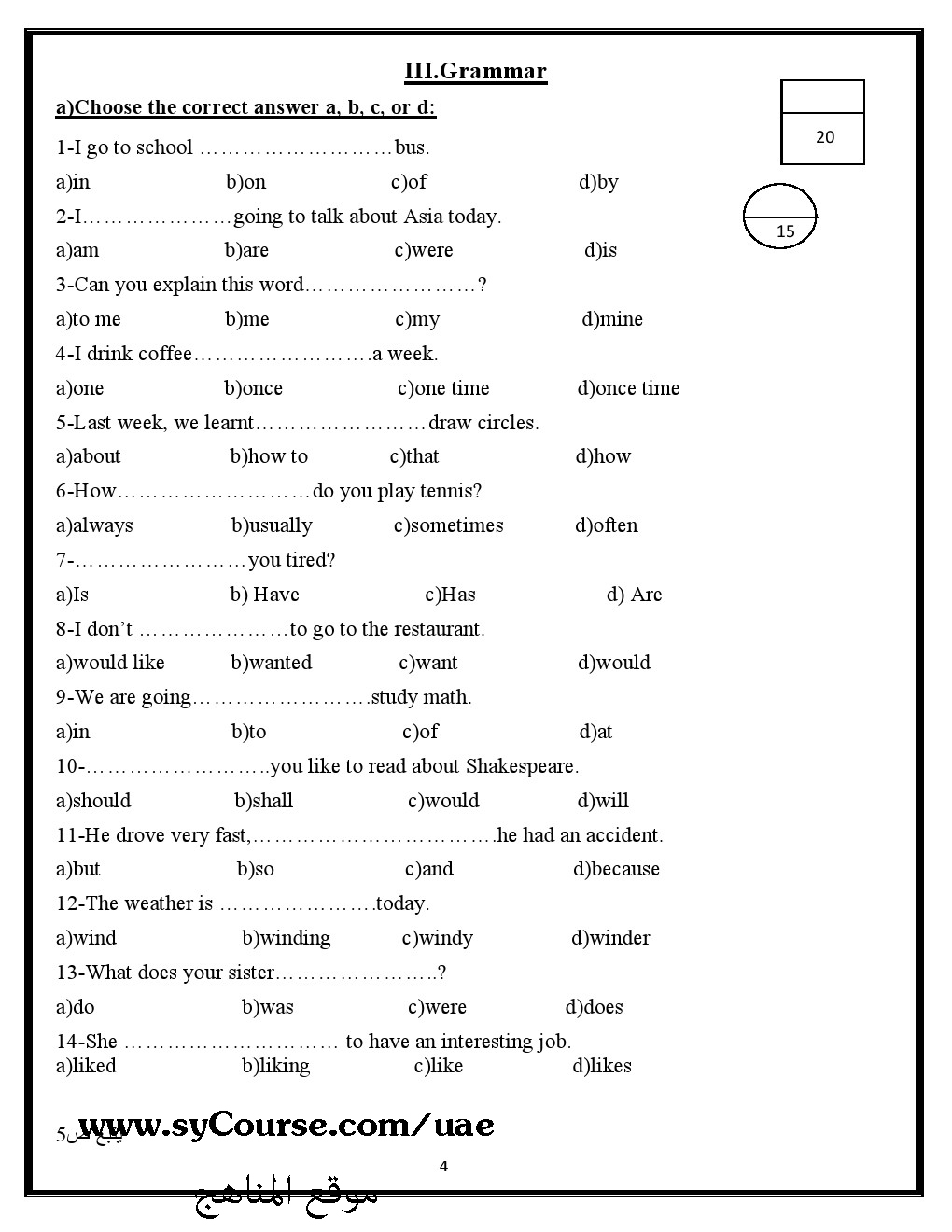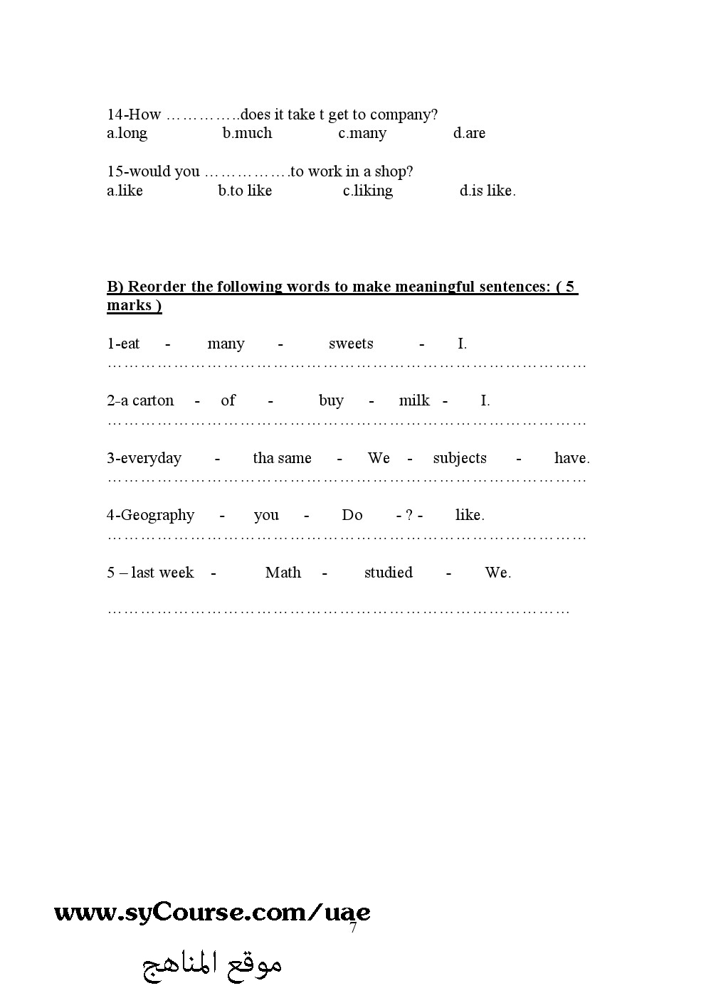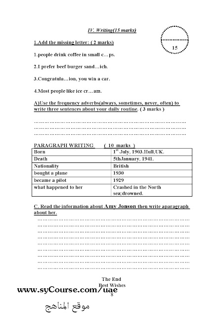 أنت هنا: موقع المناهج ⇦ المناهج الإماراتية ⇦ الصف الثامن ⇦ لغة انجليزية ⇦ الفصل الثاني ⇦ الامتحان النهائي |
