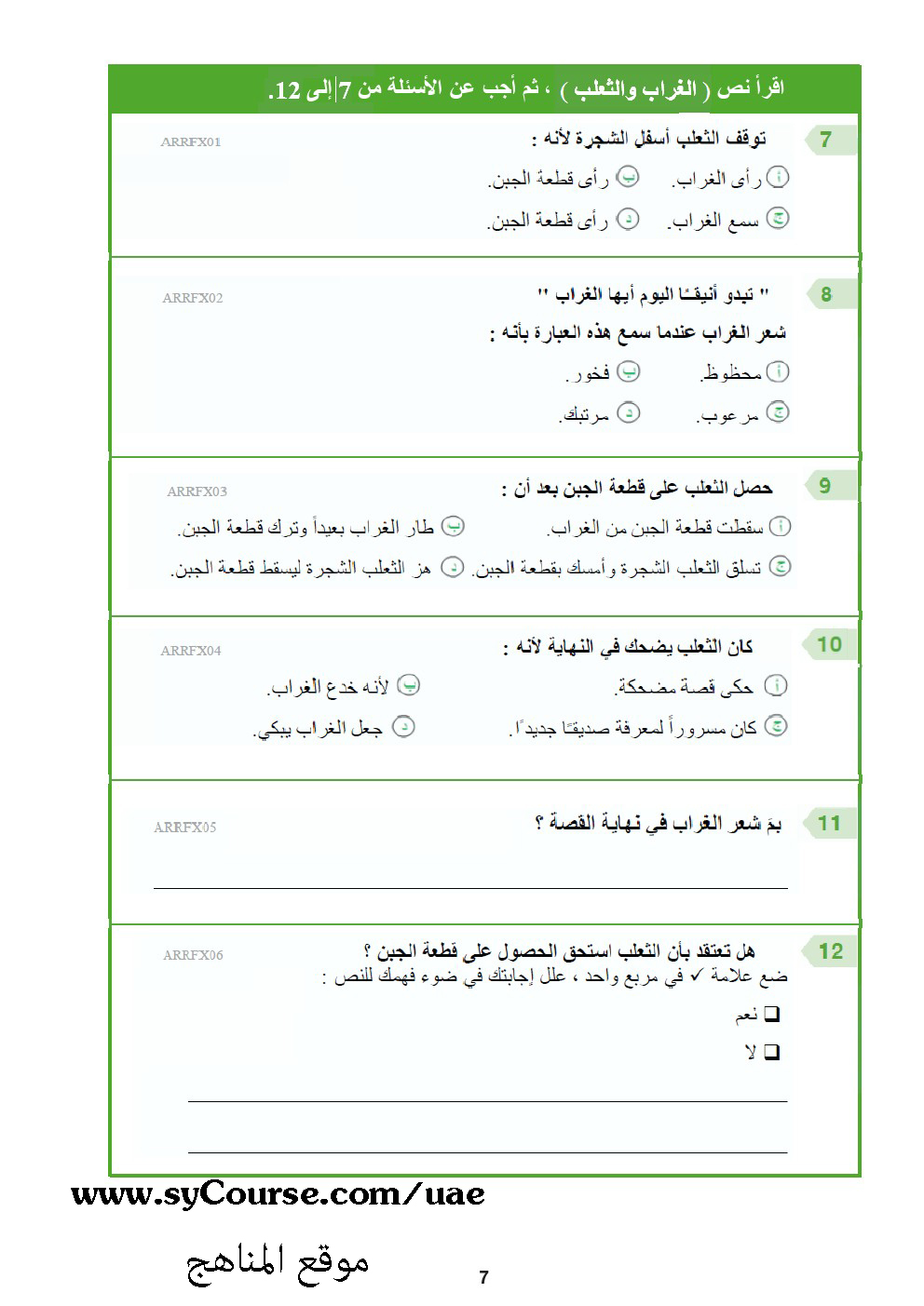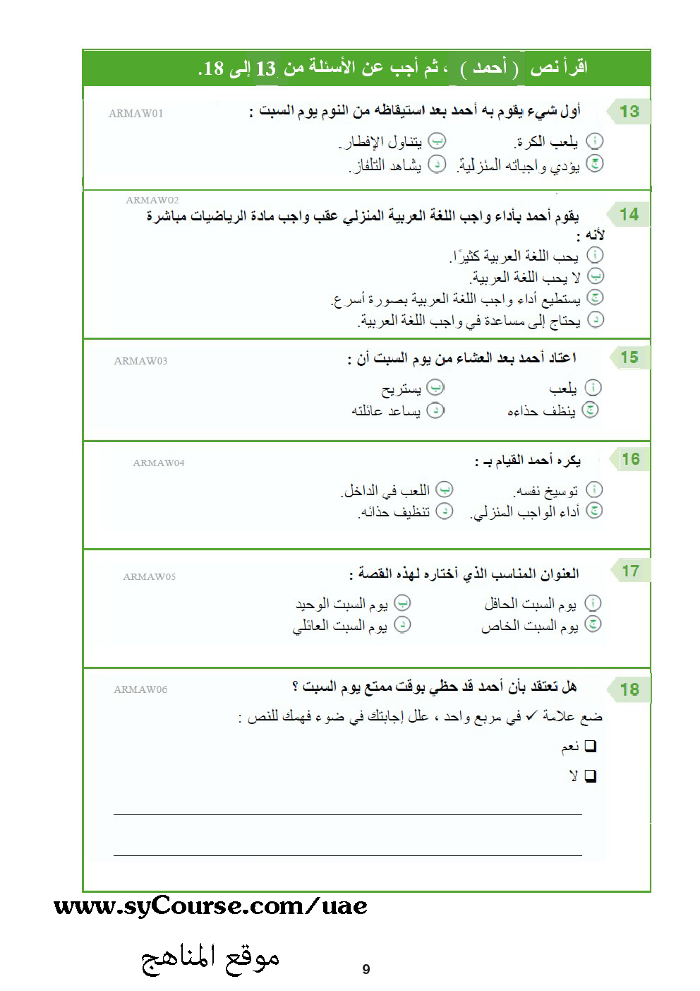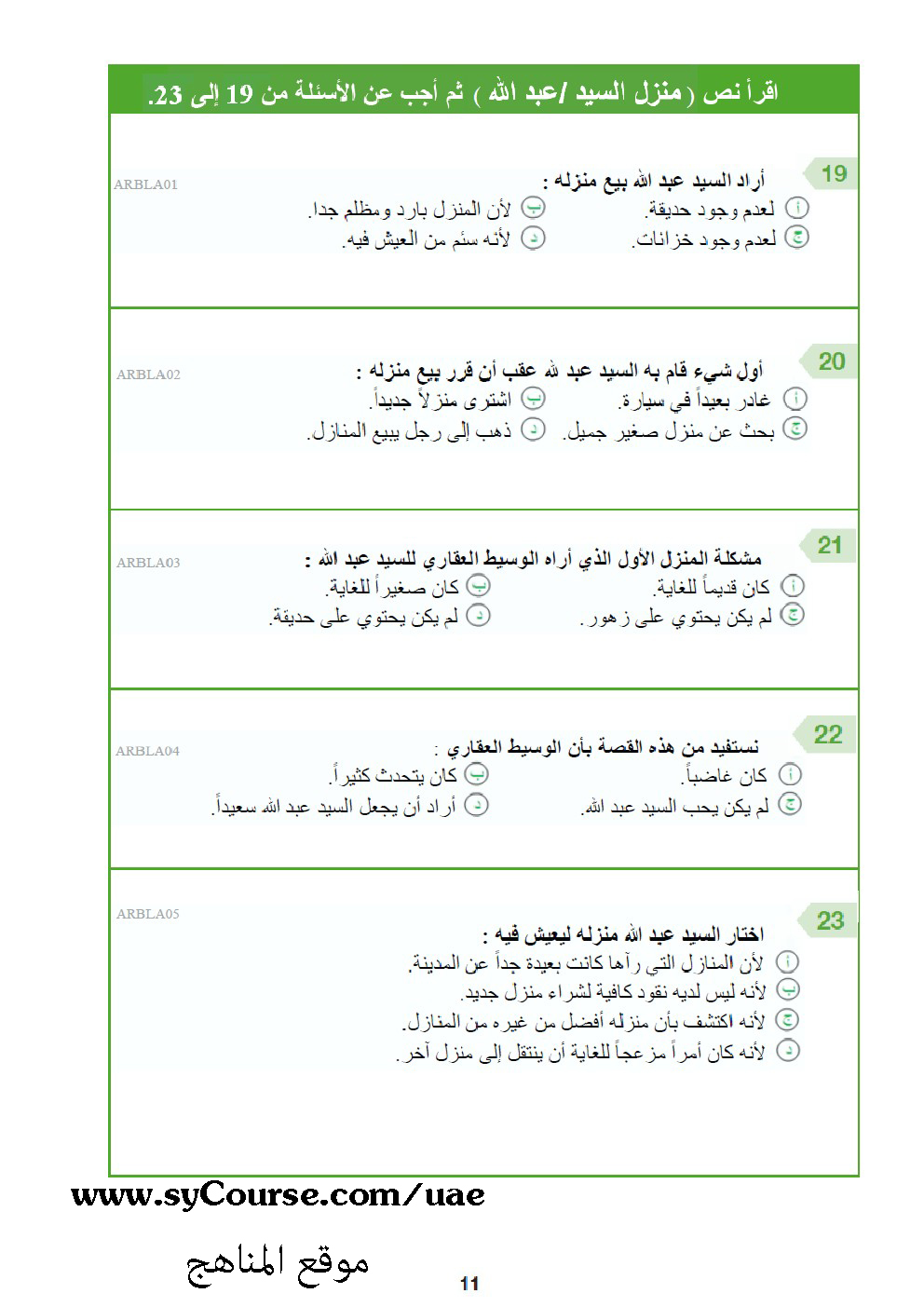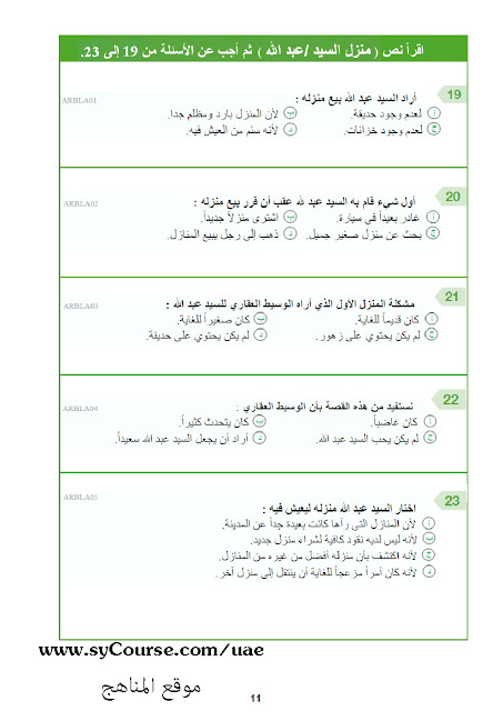 | المادة: لغة عربية | ||