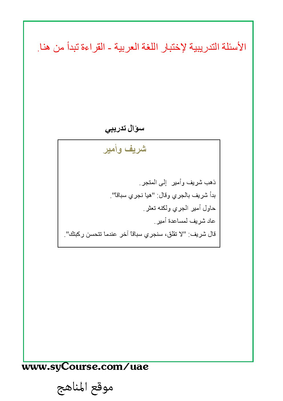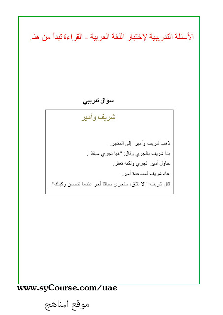 | أسئلة تدريبية لاختبار اللغة العربية | ||