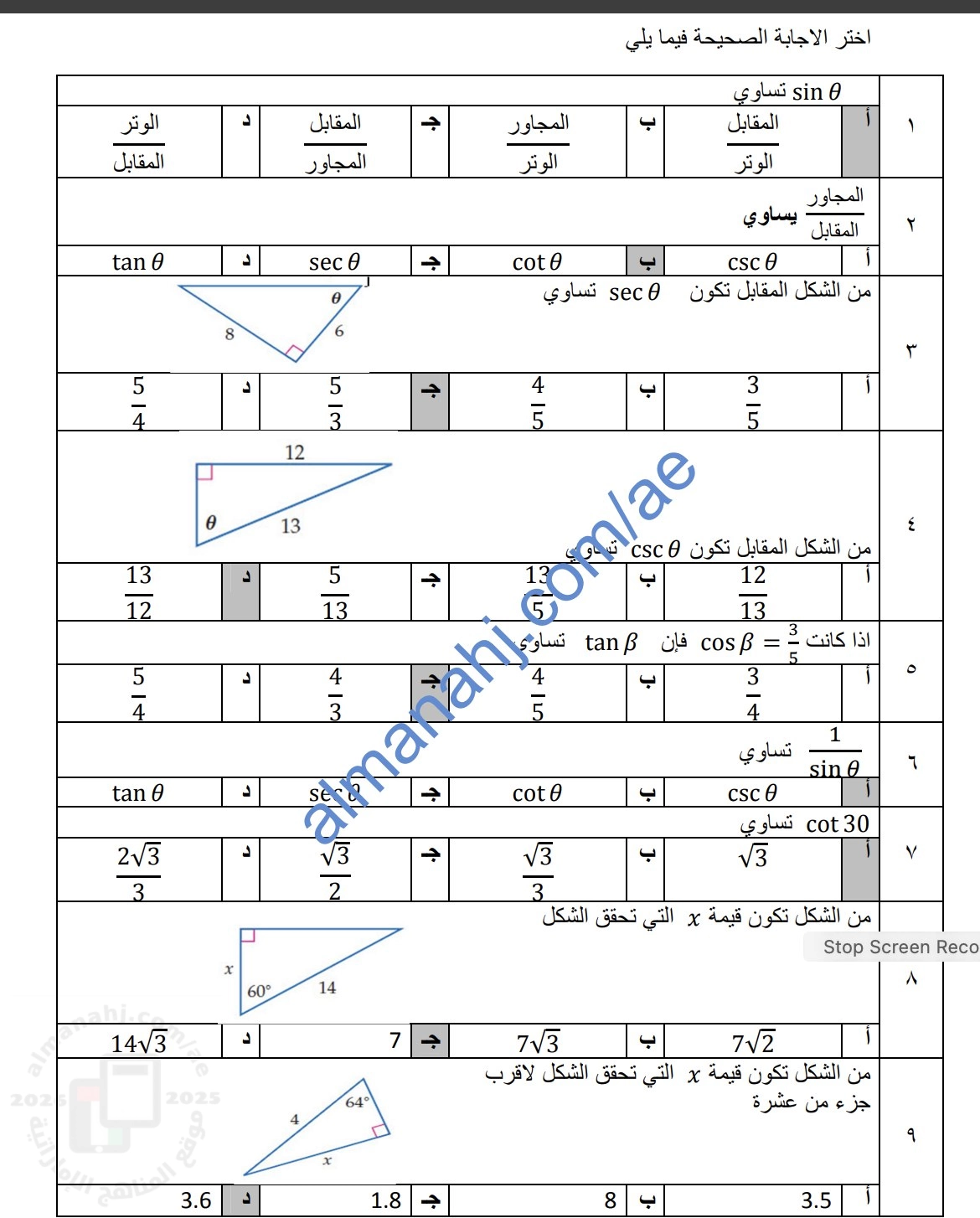 معلومات الملف: يحتوي الملف المرفق على مراجعة اختر الاجابة الصحيحة مع الحل في مادة الرياضيات للصف العاشر المتقدم. | ||
