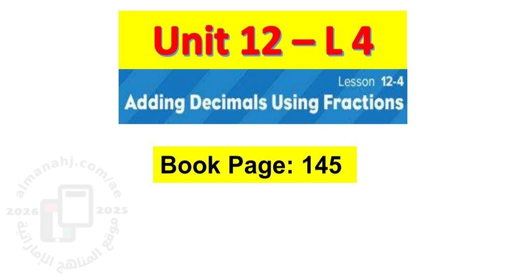 حل أوراق عمل الدرس الرابع Adding Decimals Using Fractions من الوحدة 12 منهج ريفيل