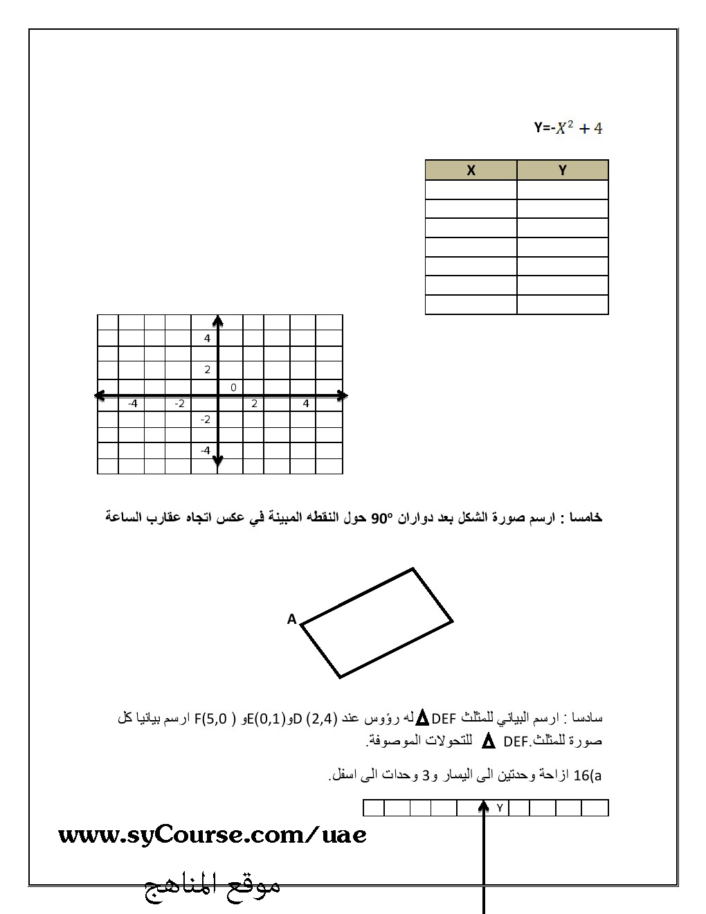 4. الصف السادس, رياضيات, مذكرة الاختبارات الوطنية من المدرسة الأهلية الخيرية