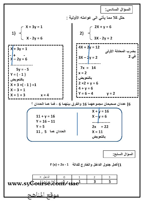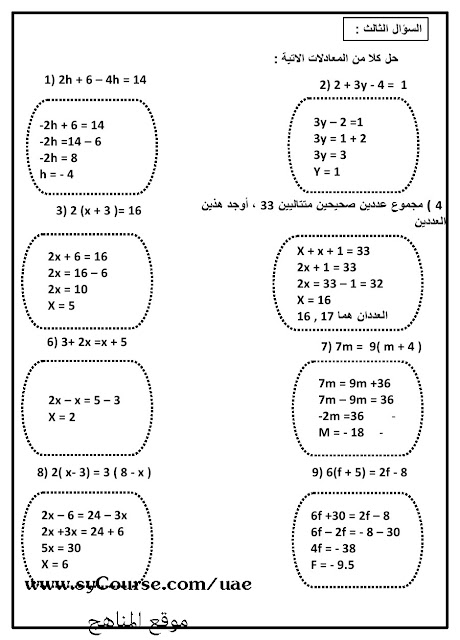 الصف التاسع, الفصل الثالث, رياضيات, مراجعة (أسئلة مع الحل) 2015\2016 | ||
