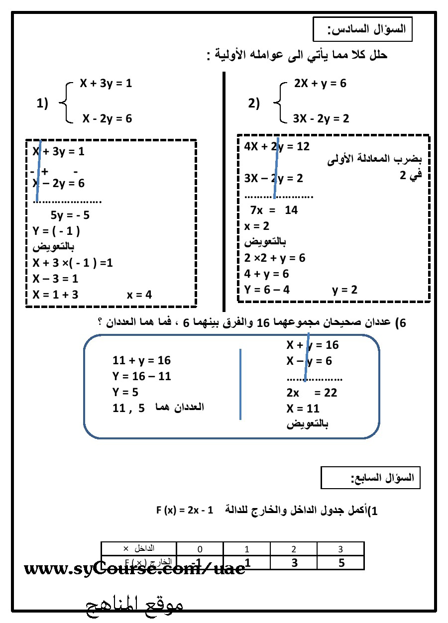 مراجعة (أسئلة مع الحل) 20152016, الصف التاسع, رياضيات, الفصل الثالث, 2018-2019 | ||