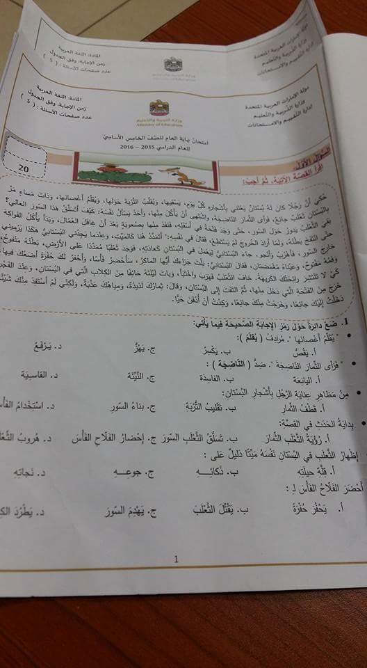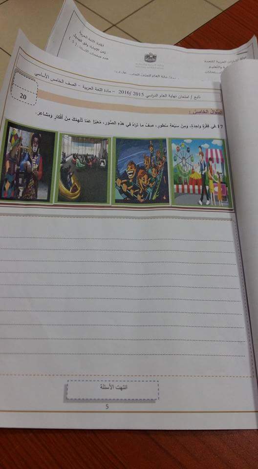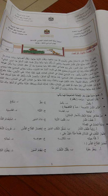 معلومات الملف: الصف الخامس, الفصل الثالث, لغة عربية, امتحان نهاية العام 2016 | ||