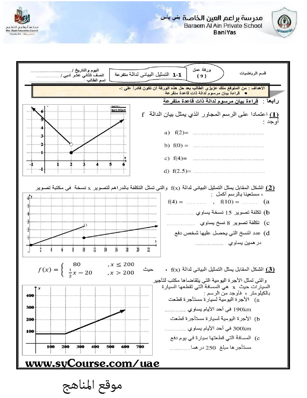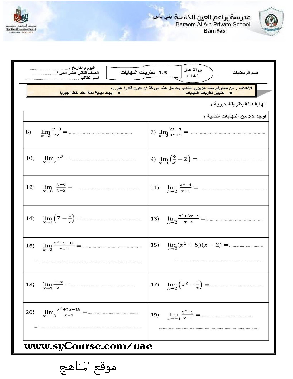 | أنت هنا: موقع المناهج ⇦ المناهج الإماراتية ⇦ الصف الثاني عشر ⇦ رياضيات ⇦ الفصل الأول ⇦ أوراق عمل |