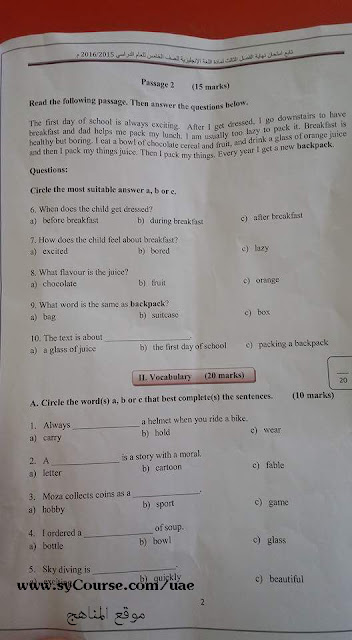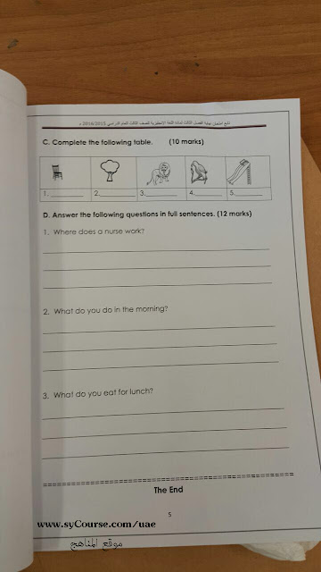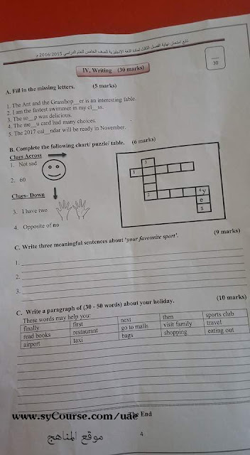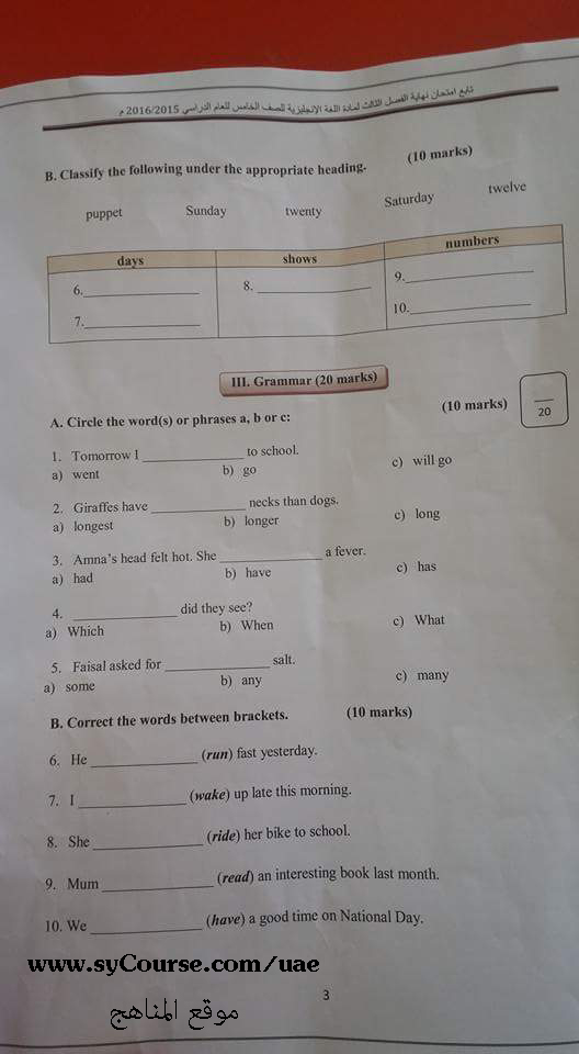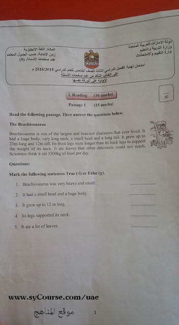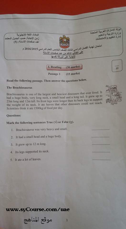 معلومات الملف: الصف الخامس, الفصل الثالث, لغة انكليزية, امتحان نهاية العام 2016 | ||