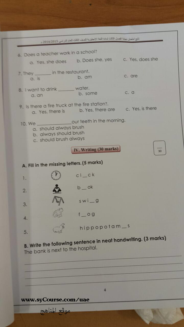 | أنت هنا: موقع المناهج ⇦ المناهج الإماراتية ⇦ الصف الثالث ⇦ لغة انجليزية ⇦ الفصل الثالث ⇦ الامتحان النهائي |