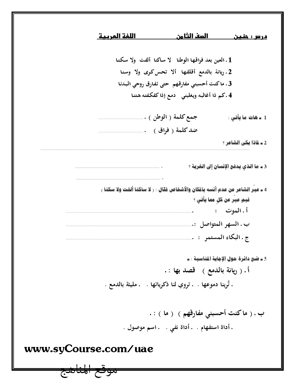 أنت هنا: موقع المناهج ⇦ المناهج الإماراتية ⇦ الصف الثامن ⇦ لغة عربية ⇦ الفصل الثالث ⇦ مذكرات وبنوك |