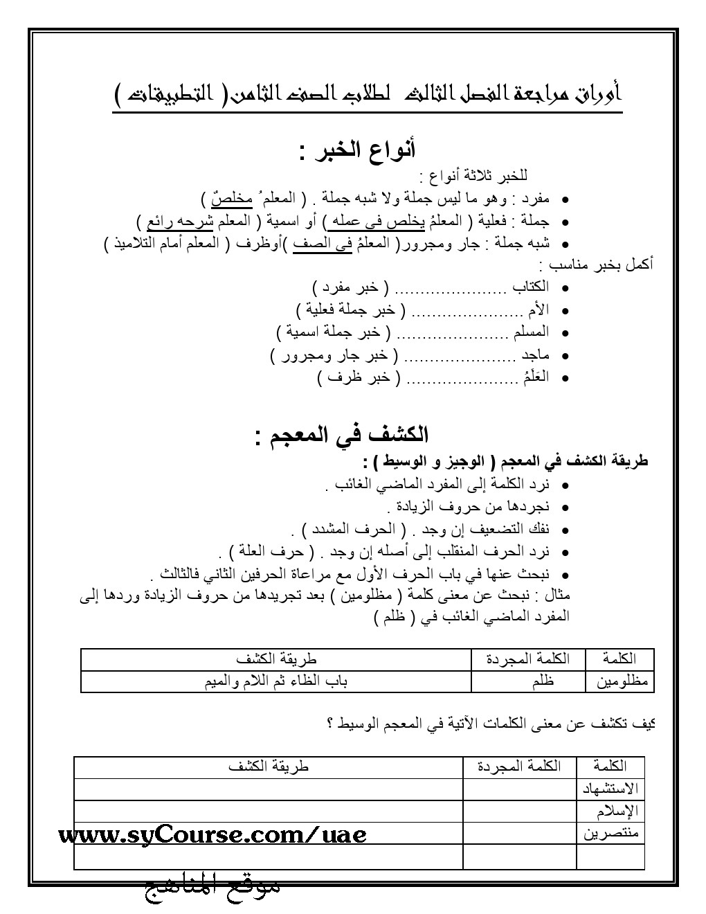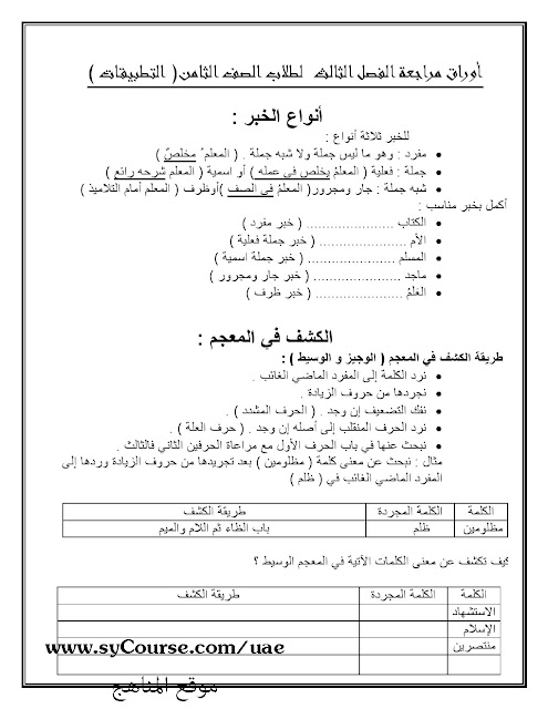 | أنت هنا: موقع المناهج ⇦ المناهج الإماراتية ⇦ الصف الثامن ⇦ لغة عربية ⇦ الفصل الثالث ⇦ مذكرات وبنوك |
