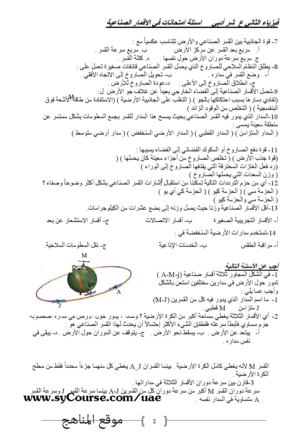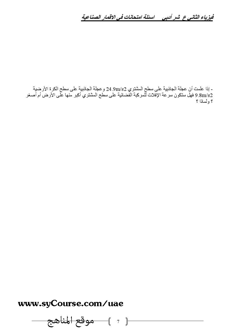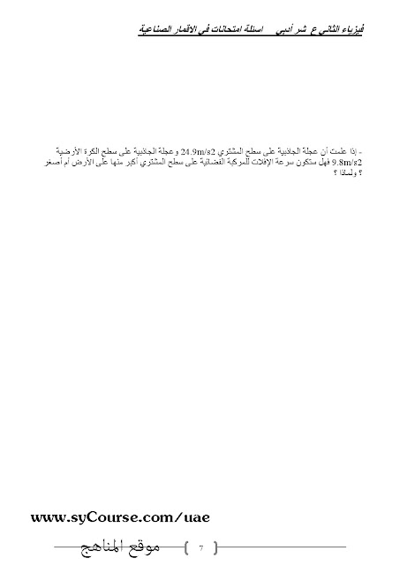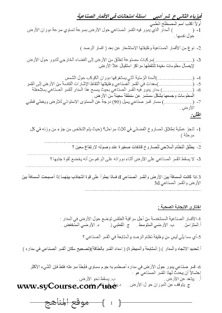معلومات الملف: الصف الثاني عشر- الفصل الثالث- فيزياء- أسئلة امتحانات في الاقمار الصناعية | ||