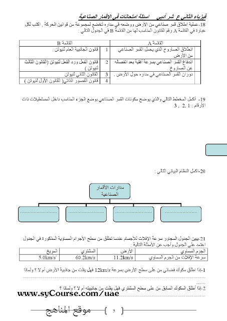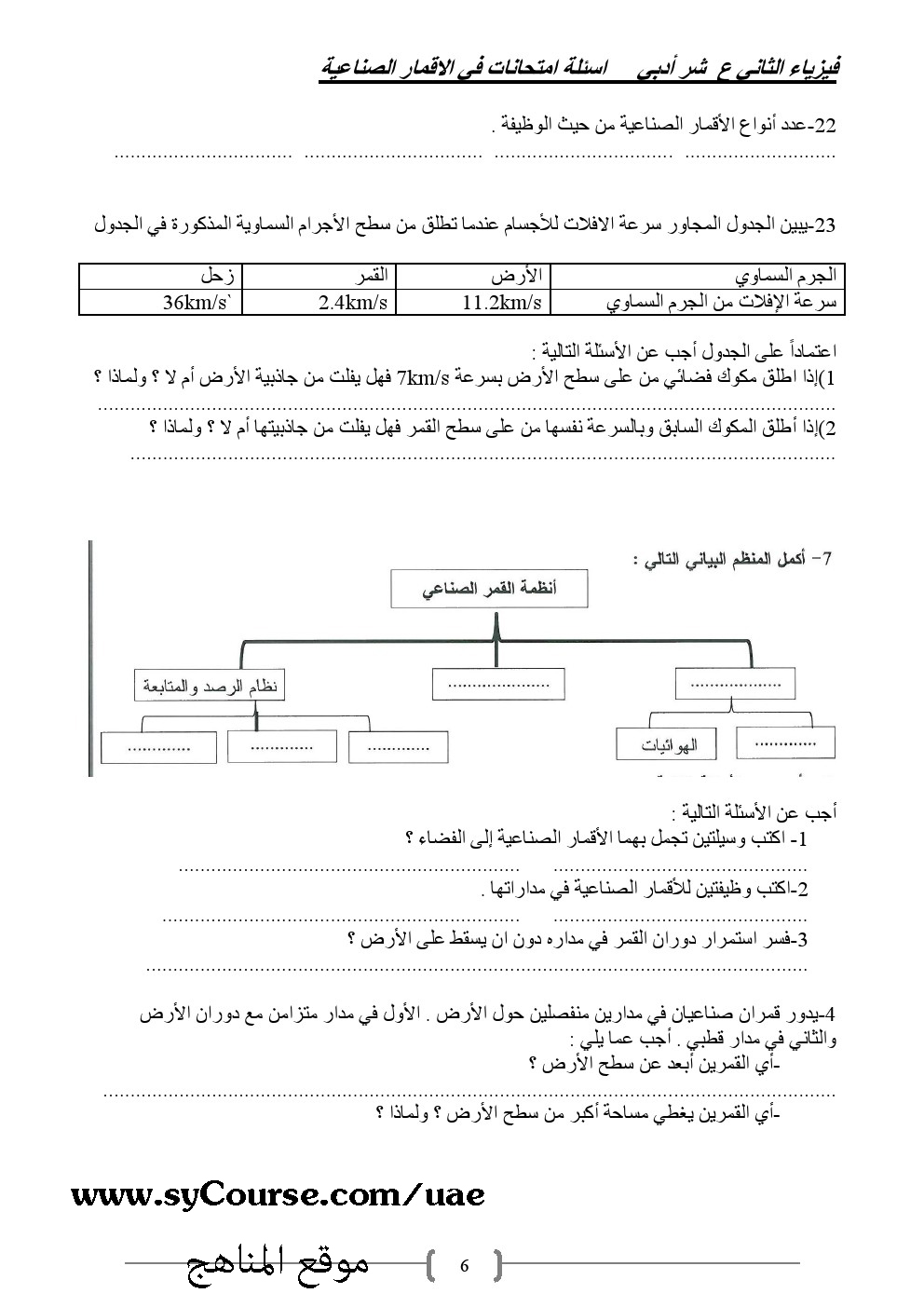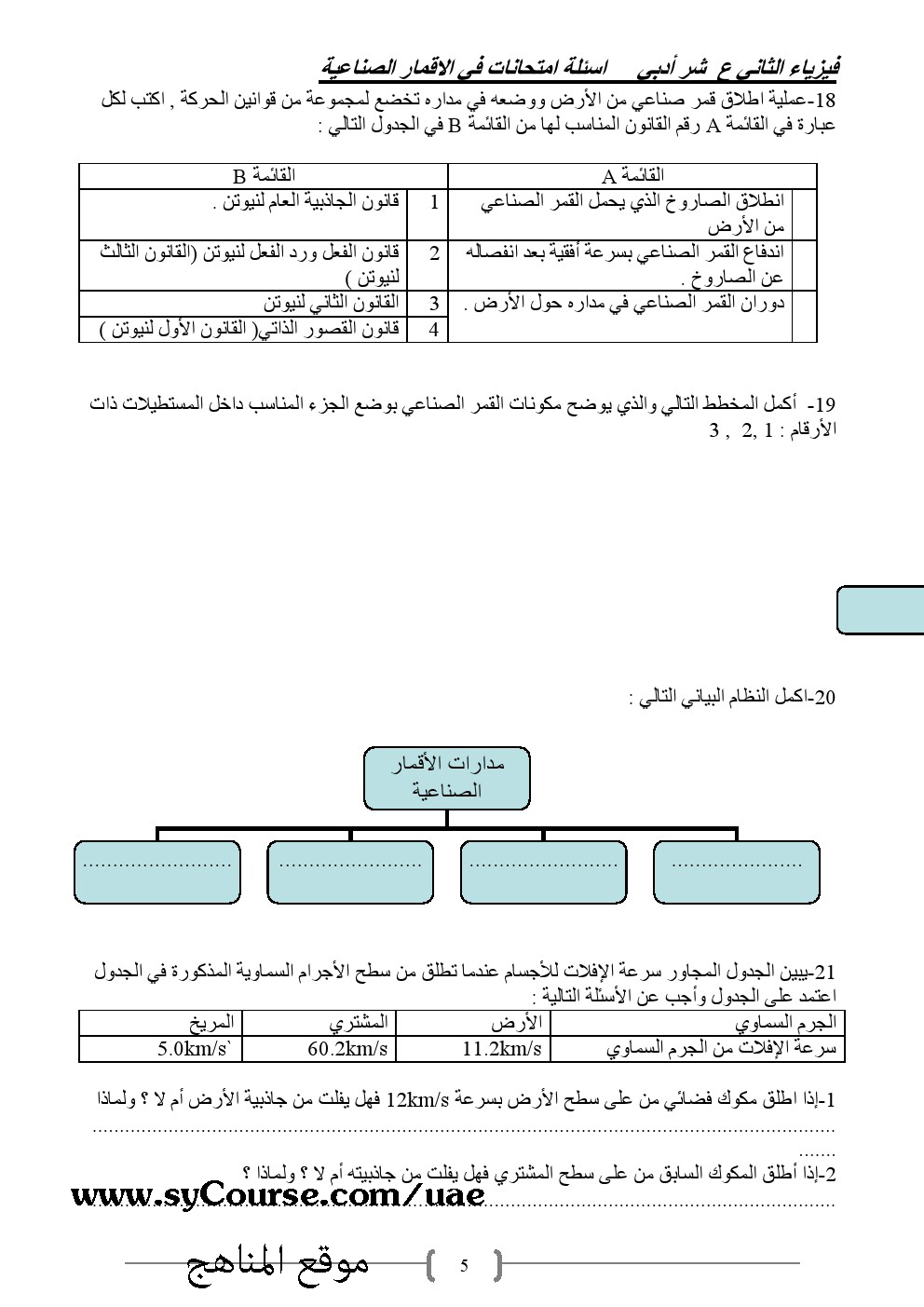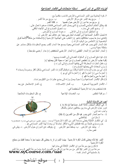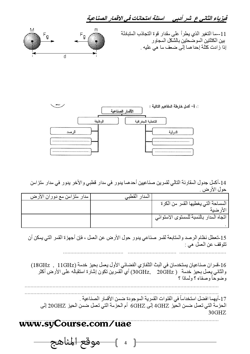 معلومات الملف: الصف الثاني عشر- الفصل الثالث- فيزياء- أسئلة امتحانات في الاقمار الصناعية | ||